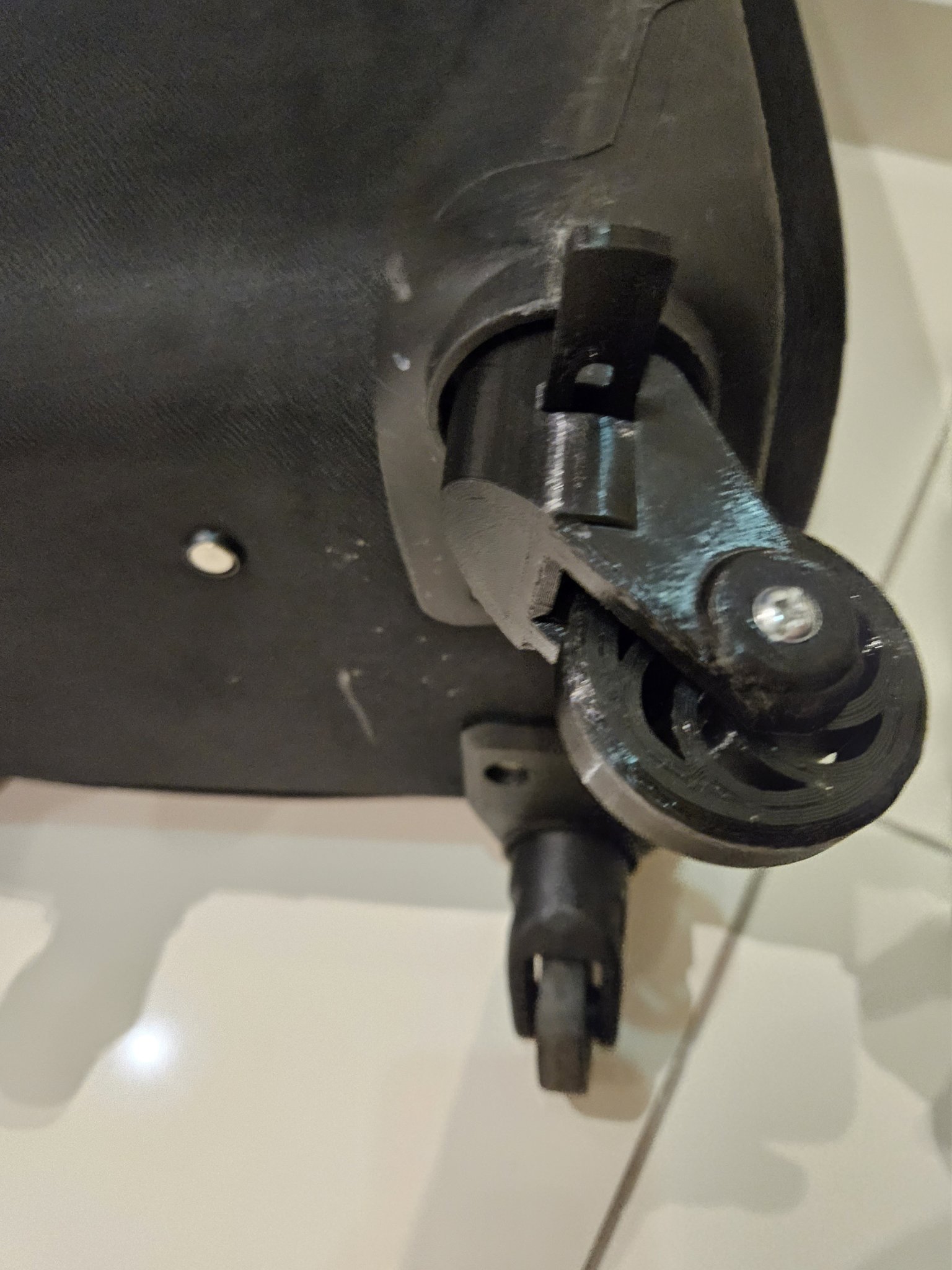 Vui lòng tìm các tệp đính kèm 2 loại bộ phận thay thế bánh xe vali. Bạn cũng sẽ cần ốc M4, đai ốc tự khóa M4 và keo Nhật Bản để lắp ráp. Đã sử dụng PETG Flament. Chiều cao lớp 0,2, độ đầy 25 phần trăm, tường 6 lớp. ESun PetG Đen