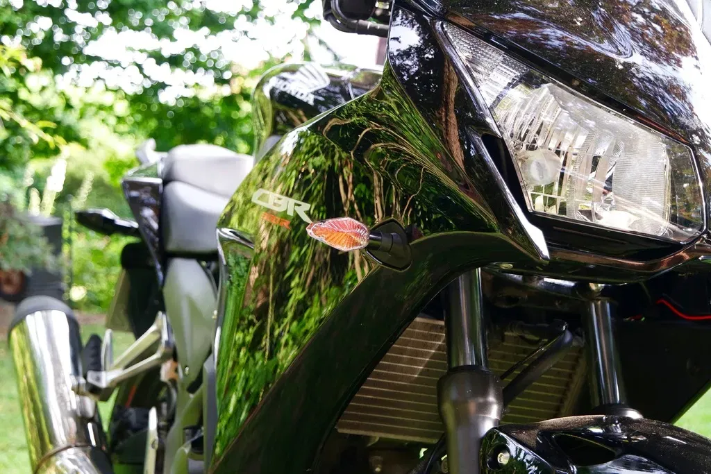Với sở thích của tôi, đèn báo của CBR quá to, vì vậy tôi đã thay thế chúng bằng một số Barracuda Mini Vipers. Nhưng thực sự thì điều này dễ nói hơn làm, với thực tế là không có bộ chuyển đổi đèn nào có sẵn mà không để lại một lỗ lớn trong bộ quây. – Đã đến lúc khởi động A8. :)
