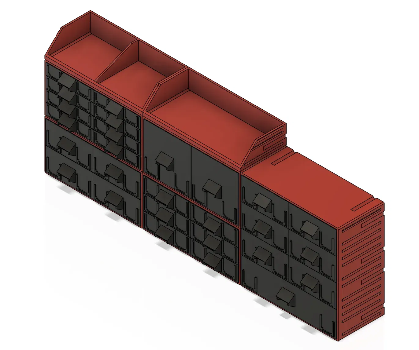 - thêm một “ Hộp có ngăn kéo_6x2+1_150x70x150 ” với mặt sau mở, theo cách này đã giảm ~2 giờ thời gian in