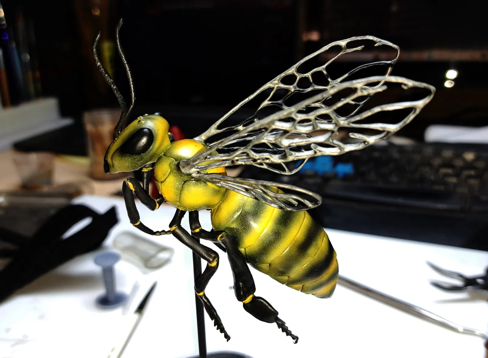 Tôi đã in bằng nhựa resin bản mô phỏng tuyệt vời của một con ong mật với kích thước khoảng bằng nắm tay. Sau đó, tôi đã phun sơn cho mô hình và chi tiết hóa nó bằng cách sơn tay. Điều này được in trong một lần, vì vậy việc loại bỏ giá đỡ và sơn mà không làm hỏng nó là một thách thức nhưng đã rất đáng giá. Cảm ơn người sáng tạo gốc. Làm tốt lắm. Tôi cũng đã cung cấp tệp cắt Lychee cho những ai sử dụng Lychee.