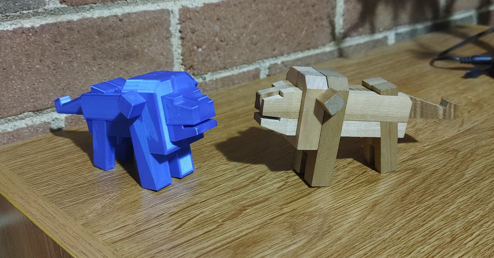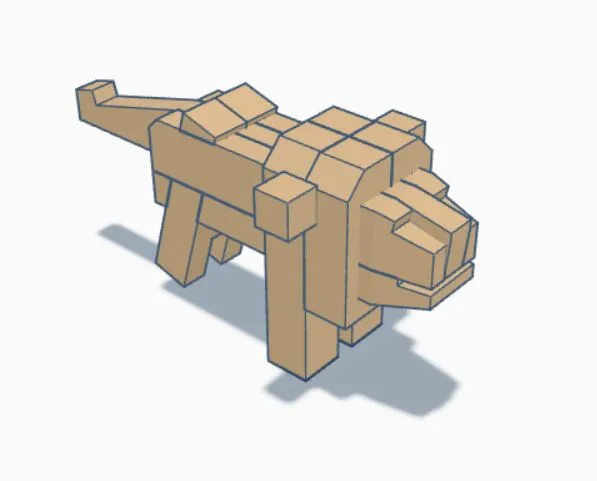 Tái tạo lại câu đố kumiki gỗ Nhật Bản cổ điển (từ những năm 1950 đến 1970) của một con sư tử.