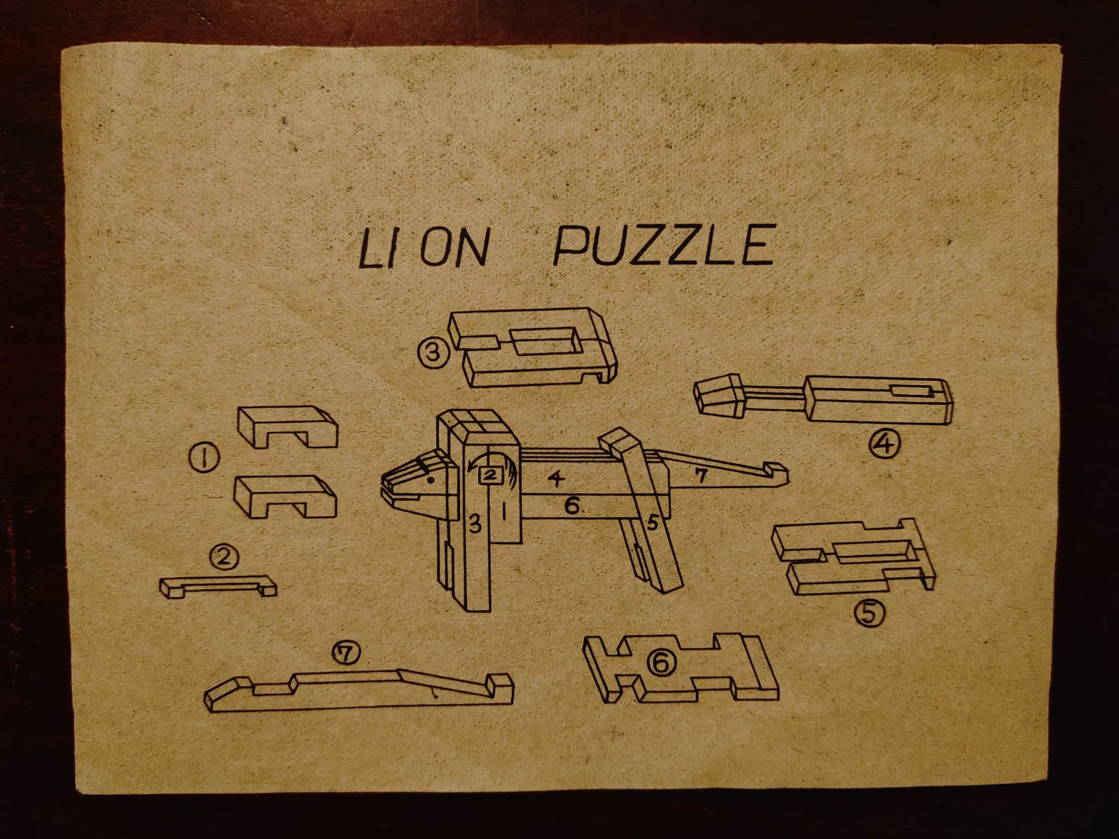 Câu đố gỗ Nhật Bản "Kumiki" hình sư tử vintage