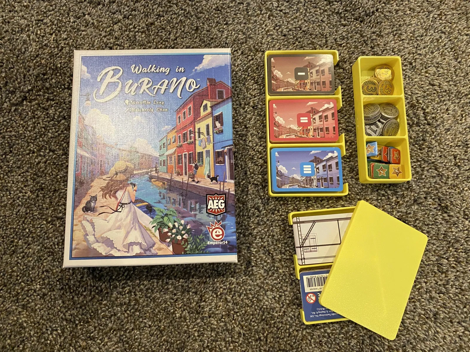 Tôi đã tạo ra một bộ chèn nhanh chóng và dễ dàng cho trò chơi Walking in Burano của Empress S4 games. Mọi thứ đều có nắp để lưu trữ/vận chuyển không bị lộn xộn. Giữ các thẻ xây dựng cho trò chơi.