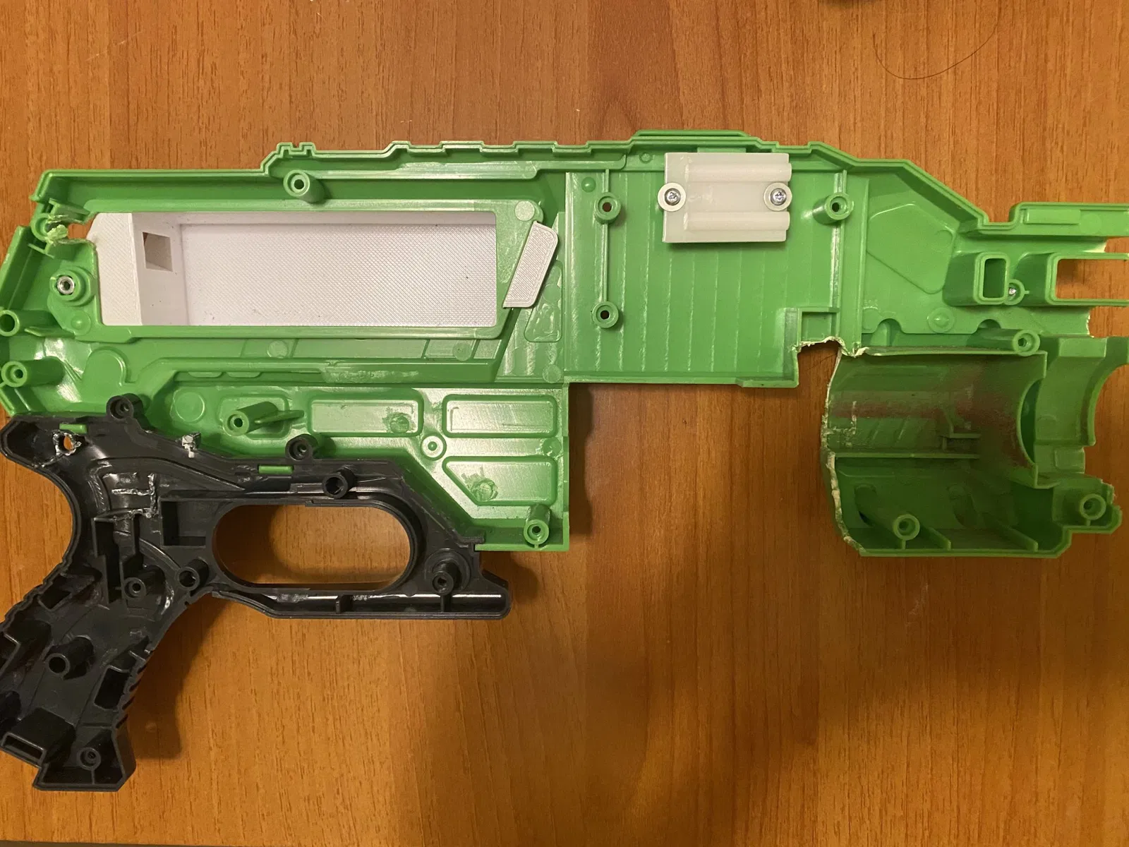 Tôi đã thiết kế cụ thể điều này để làm việc với các khung bánh đà của buffdaddy cho Matrixfire, ở đây: https://www.thingiverse.com/thing:4907272 , vì vậy nếu bạn đã có một Matrixfire đã được chỉnh sửa, bạn nên có thể tái sử dụng khung đó trong bộ chuyển đổi này. Tôi không biết liệu điều này có hoạt động với khung tiêu chuẩn không. Tôi không khuyên bạn nên làm như vậy, vì tôi đạt khoảng 100 fps với viên đạn dài đầy đủ khi sử dụng thiết lập bánh đà tiêu chuẩn trên 12v. Tôi tưởng tượng rằng viên đạn nửa sẽ có tốc độ thấp hơn nữa.