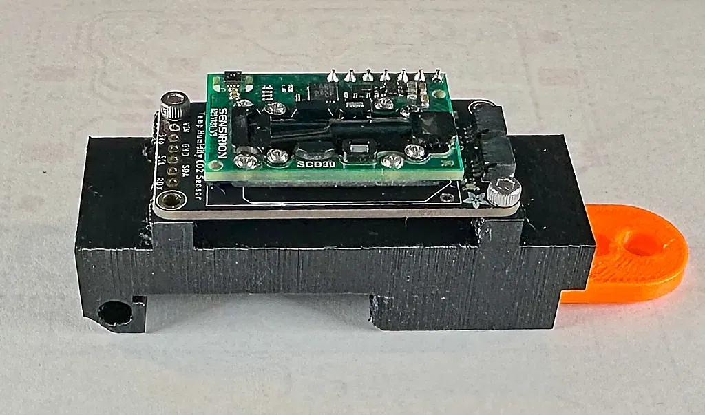 Một giá gắn dựa trên thanh din cho cảm biến CO2 SCD-30 của Adafruit.