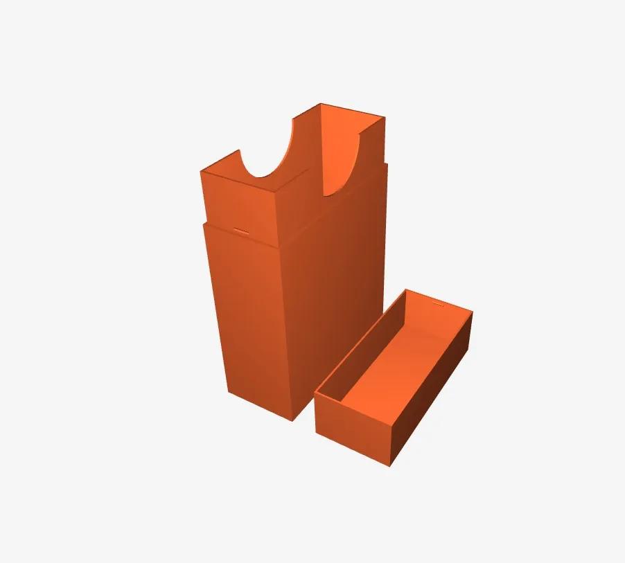 mã OpenSCAD đã được chỉnh sửa (đại khái) để loại bỏ logo và văn bản nhằm tăng tốc độ in ấn và được điều chỉnh kích thước để phù hợp với thẻ Magic the Gathering (MTG) không có bao bì để tổ chức thẻ và bộ bài.
