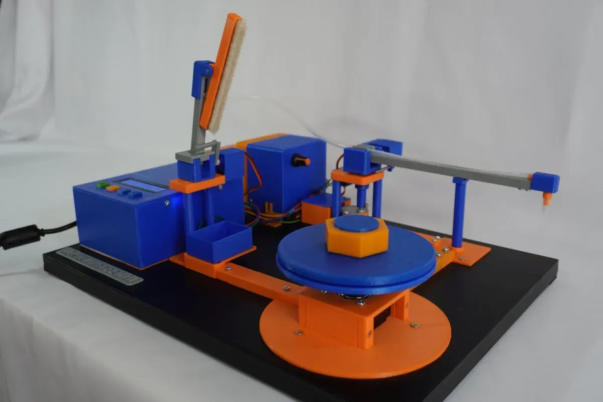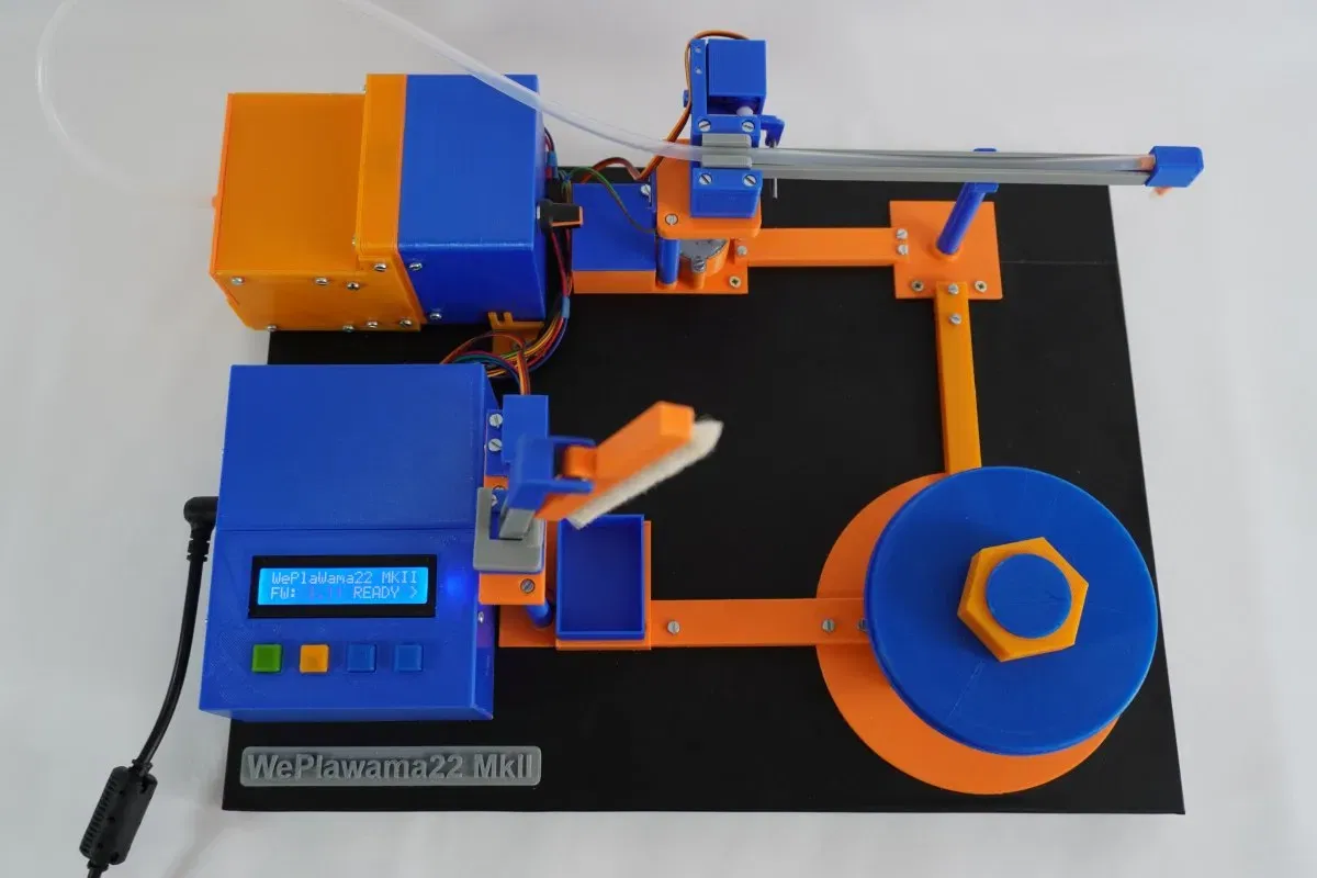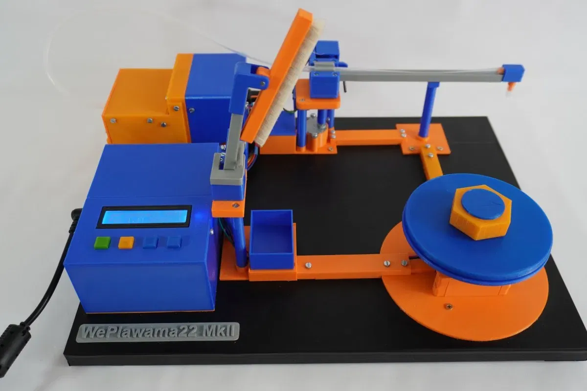 Một máy làm sạch bản ghi vinyl hoạt động hoàn toàn đầy đủ với việc trích xuất điểm. Xây dựng từ 82 bộ phận in.