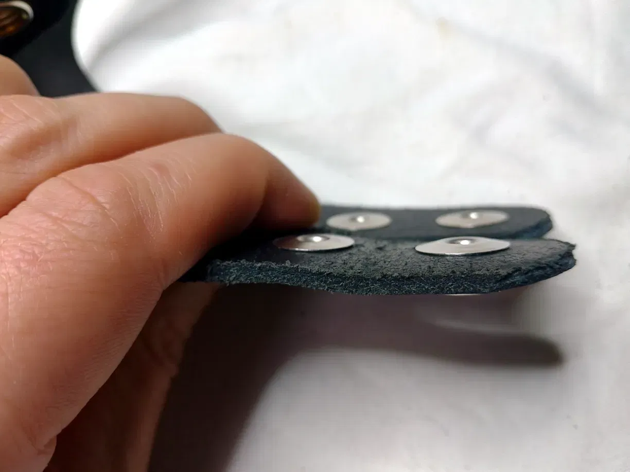 Công cụ tiêu chuẩn sử dụng một mảnh cho các nút bấm và cho đĩa phẳng. Điều này dẫn đến việc đĩa sau bị cong lại. Tôi không thích vẻ ngoài của nó vì không an toàn khi bạn cho nút qua một mảnh da dày 2,5mm.