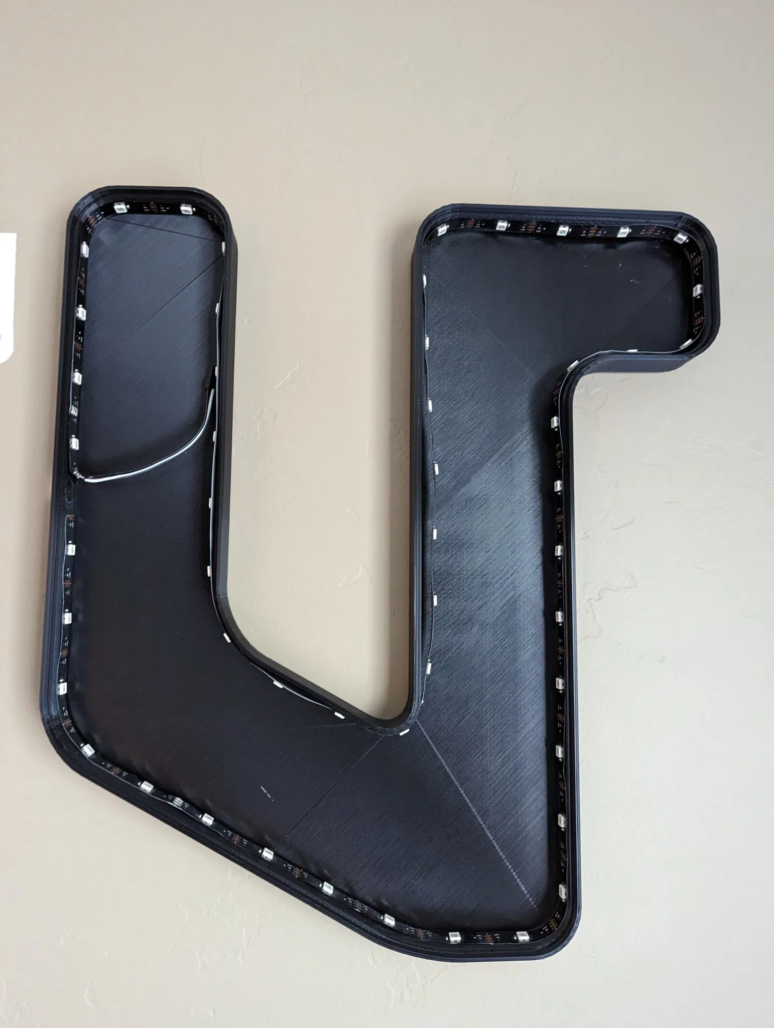 Cho phép chạy dải LED dọc theo các bức tường, với các lỗ giữa mỗi chữ cái để kết nối chúng lại với nhau.