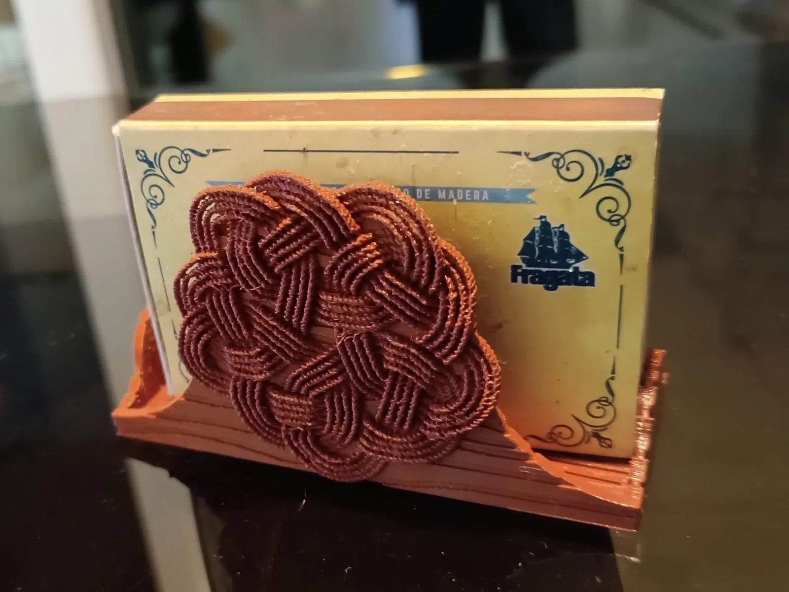 Giá đỡ hộp diêm với trang trí nút thắt đẹp mắt
