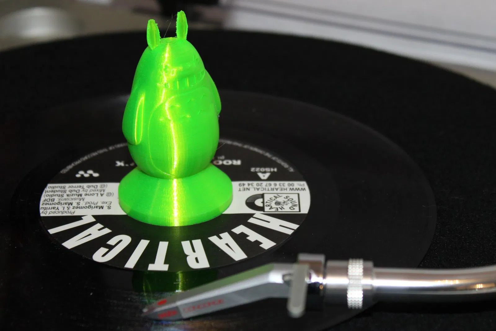 Bộ chuyển đổi đơn bảy inch cho người chơi ghi âm mười hai inch với một bức tượng Totoro trên đỉnh