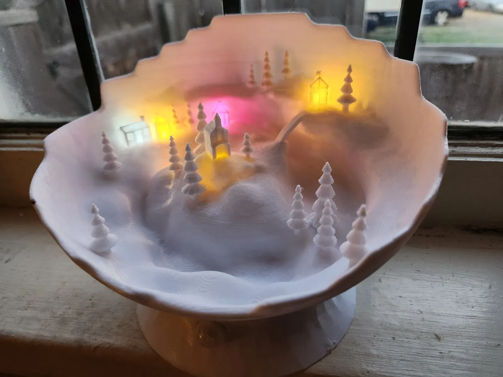 Cập nhật 11/1/2023: Tôi đã thêm một tệp STL trùng lặp mà không có lỗ PIR ở phía trước, vì vậy nếu bạn muốn không lắp đặt điện tử, hoặc hạn chế, bạn có thể sử dụng cái đó và không có lỗ ở phía trước. Làng Giáng Sinh Mini trong một lớp bảo vệ. Những thiết kế trước đây của tôi rất đẹp, nhưng dễ vỡ. Vì vậy, tôi đã thiết kế một "Món quà Giáng Sinh cho tất cả" mà các phần dễ vỡ được bảo vệ nhiều hơn. BẠN CÓ THỂ THÊM CÁC THIẾT BỊ ĐIỆN TỬ CỦA RIÊNG BẠN VÀ CÓ MỘT TRƯNG BÀY ĐẸP. Tôi cũng bao gồm các thiết bị điện tử mà tôi đã làm, ngay cả với một cảm biến chuyển động thụ động, vì vậy nó sẽ kéo dài lâu hơn với pin. Quy trình xây dựng được chi tiết hơn nhiều tại: