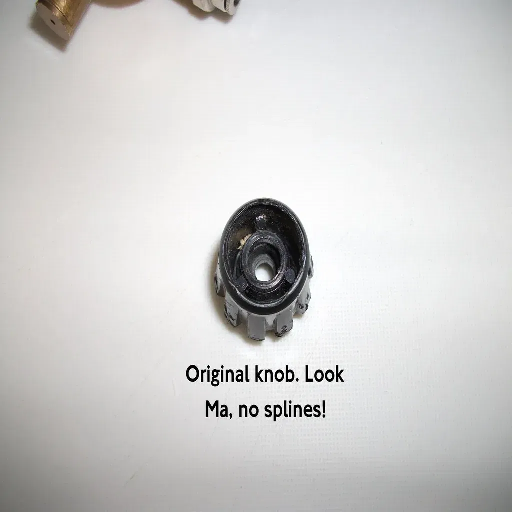 Sau khi tôi tháo ốc giữ tay cầm của van, lý do ngay lập tức trở nên rõ ràng: Tôi không biết tay cầm ban đầu có dạng rãnh hay vuông để phù hợp với trục đầu van, nhưng dù sao, nó rõ ràng không phải như vậy bây giờ! Do đó, bất kể ốc giữ có chặt đến đâu, tay cầm không có gì để bám vào trục (ôi, ồ, thưa bà!).