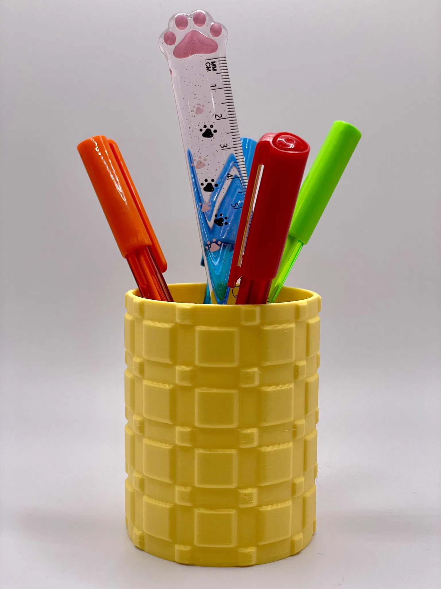Giới thiệu Một giá đỡ bút đẹp cho nơi làm việc của bạn. Hoặc chỉ cần sử dụng như một món trang trí - tùy bạn :) #### Cài đặt in - in với 15-20% độ đầy (chỉ là một gợi ý)