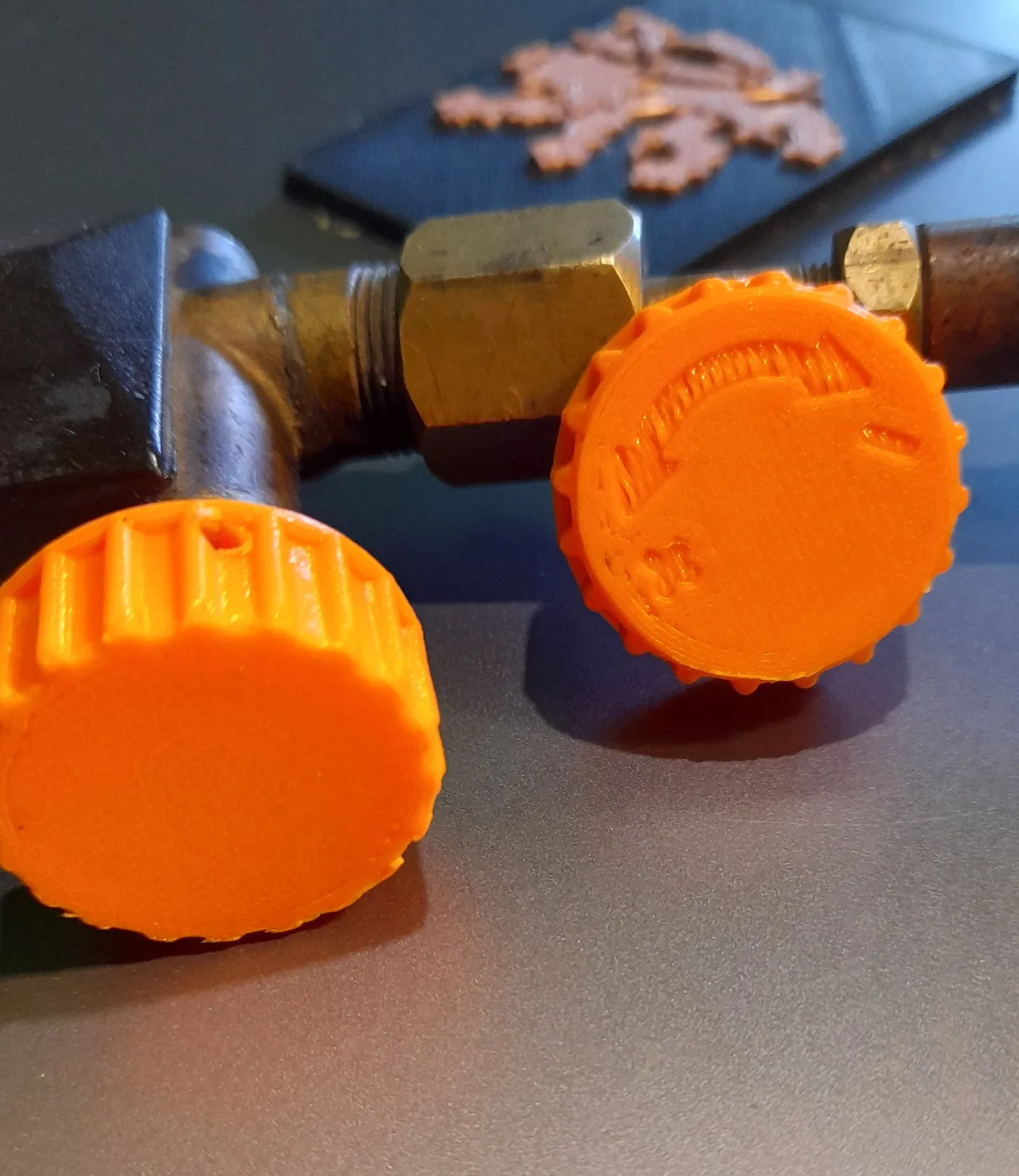 tốt nhất là bóc nút cũ hỏng ra, kéo chốt khóa ra, mài nhẵn lỗ trên nút đã in và dùng một cái đinh cắt ngắn Ø 2mm để giữ nút lại.