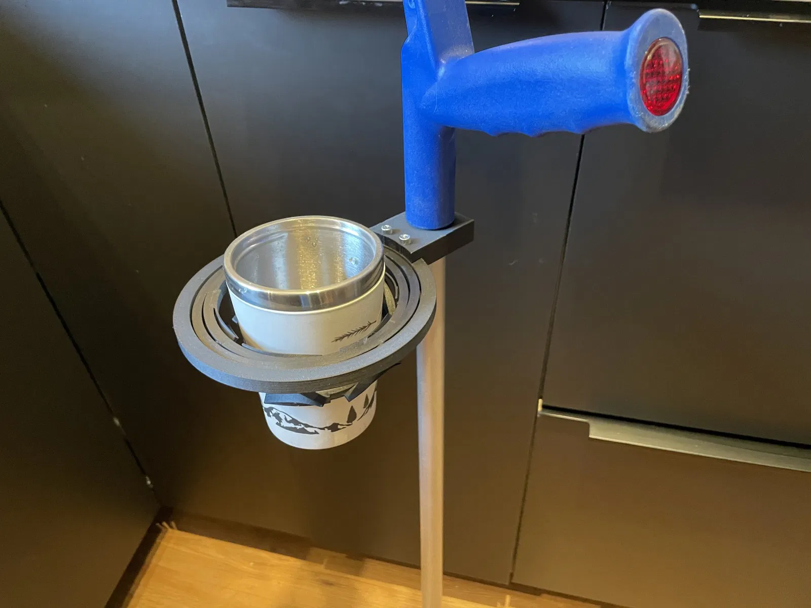 Bộ giữ cốc tự cân bằng cho các thanh 22mm như được sử dụng cho nạng.