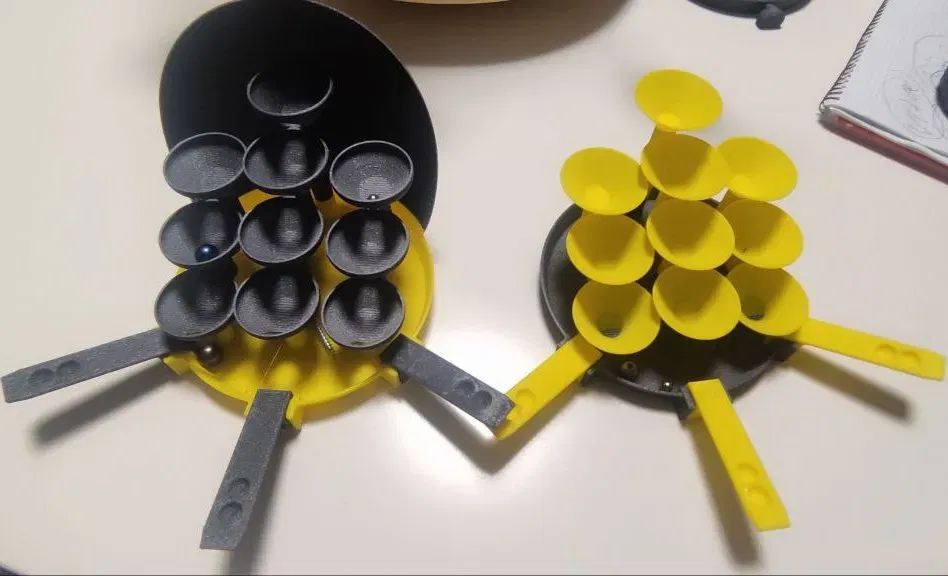 các mẫu khác tương tự ở Đây là một video của phiên bản trước, phiên bản đã xuất bản có một bức tường phía sau để bạn không làm mất những viên bi.