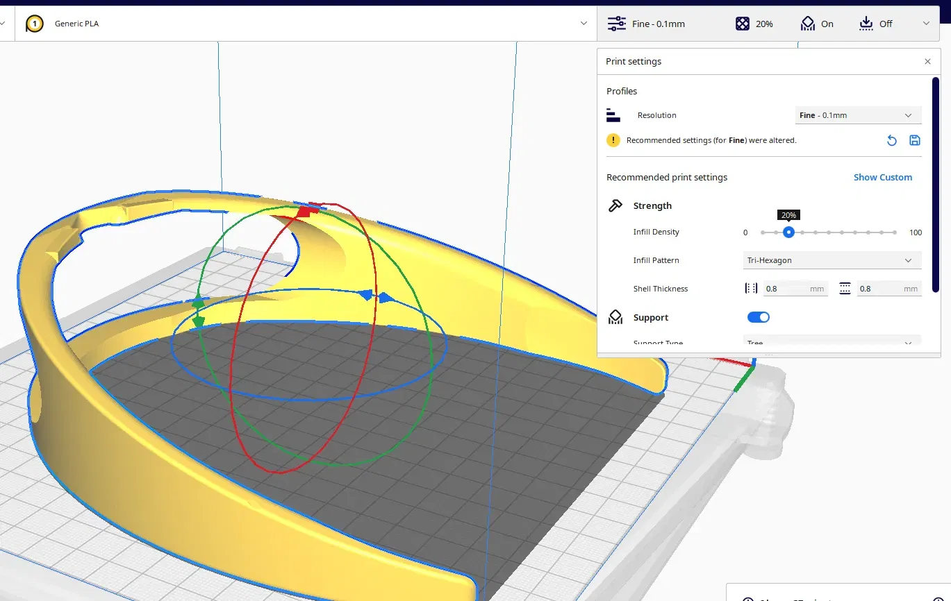 Tôi khuyên bạn nên sử dụng hỗ trợ cây, và tôi đã sử dụng độ dày 0.1mm. Tôi cũng khuyên bạn nên lật 180 độ để mặt phẳng chạm vào đĩa như trong bức tranh thứ 3.