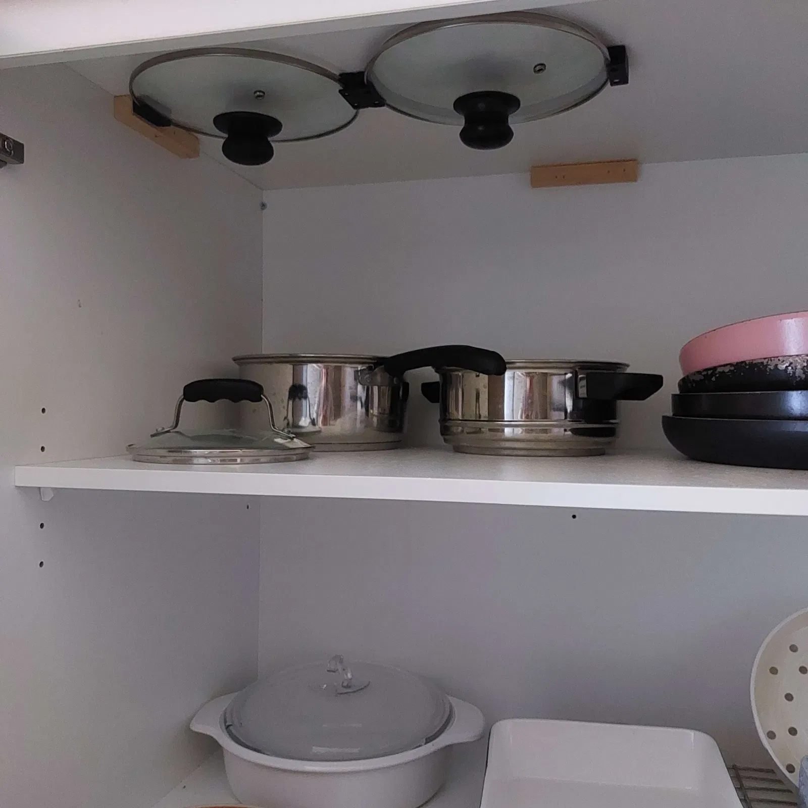 Một phụ kiện nhà bếp để giải phóng không gian tủ của bạn bằng cách gắn nắp nồi/chảo của bạn lên nóc tủ.