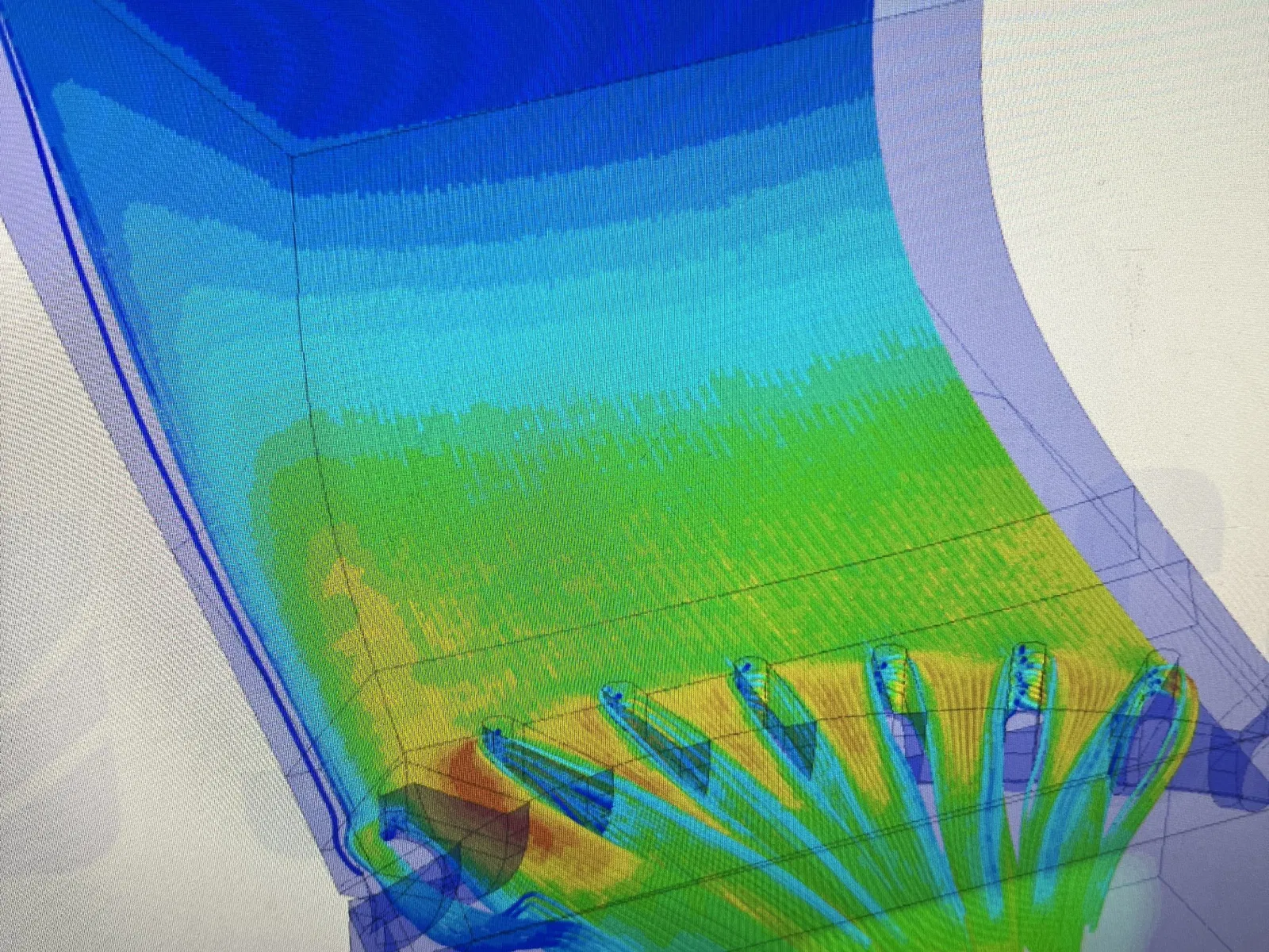Ống dẫn quạt bên phải cần có 2x miếng đệm được in, nhưng bên trái thì không.