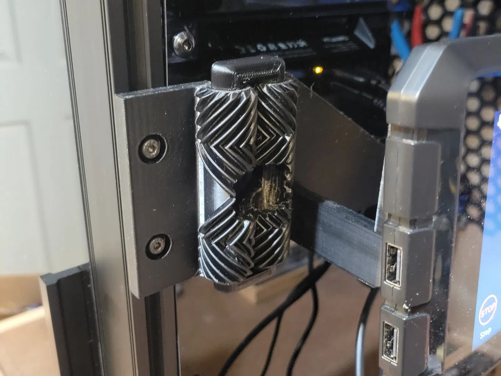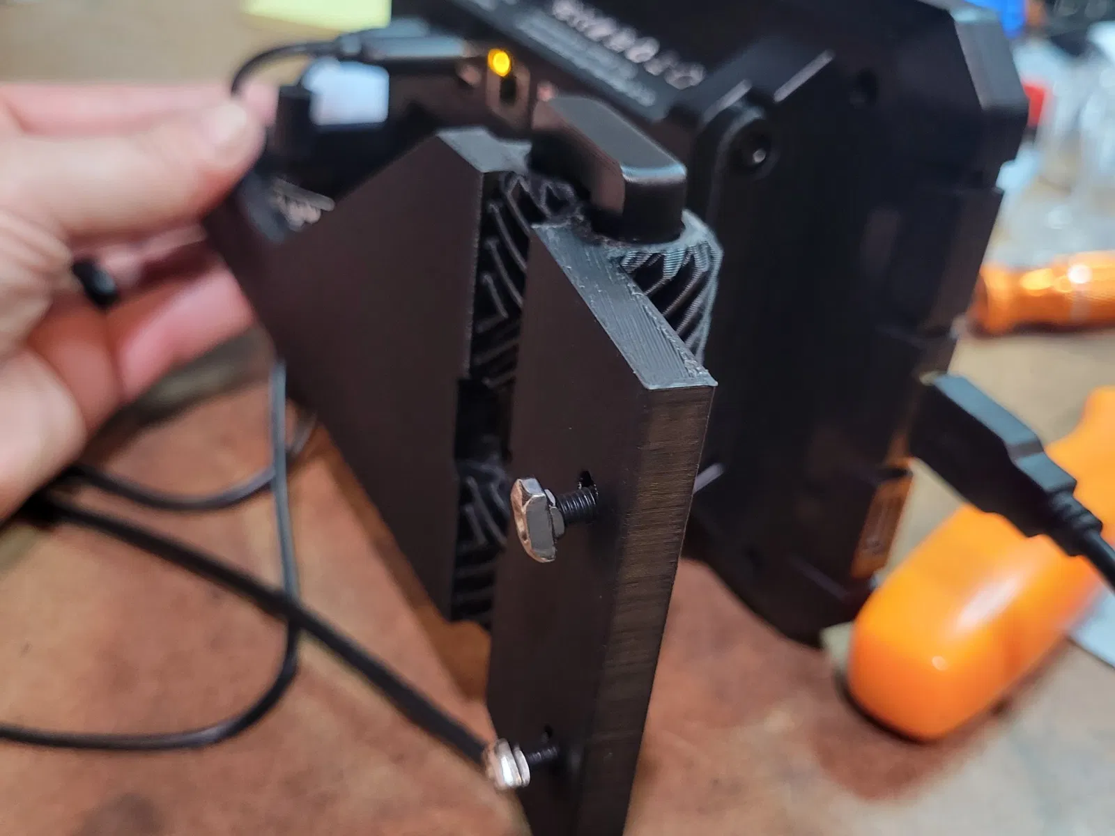 Tôi đã tạo ra bộ lắp ráp này cho Sonic Pad của mình. Sau khi thêm các cạnh cho máy in của tôi, tôi cần một cách mới để gắn Sonic Pad và đưa nó ra khỏi bàn làm việc của tôi. Tôi muốn nó có thể xoay ra khỏi đường khi không sử dụng. Tôi đã tìm thấy những cái bản lề này và đã điều chỉnh chúng để phù hợp với thiết kế của tôi. Bạn in mọi thứ theo chiều dọc như thể nó sẽ được lắp đặt ngoại trừ cặp chốt bản lề. Những cái đó có một mặt phẳng và bạn in chúng với mặt phẳng hướng xuống. Tôi đã in mọi thứ với đầu phun. 04 ở độ dày lớp. 2mm với 20% độ đặc. Tôi đã được cho biết nó in rất tốt ở độ dày. 28mm nếu bạn muốn rút ngắn thời gian in. Bạn sẽ cần in hai chốt bản lề, một cho phía trên và một cho phía dưới. Việc chèn các chốt vào các bánh răng cần một lực ấn mạnh để chỗ ngồi. Tôi gắn bộ lắp ráp vào khung của Ender 5 S1 của tôi bằng (2) đai ốc T M4 và (2) vít đầu lục M4 10mm. Trong các mô hình in, có một giá đỡ bên phải và một giá đỡ bên trái tùy thuộc vào bên nào của máy in bạn muốn lắp đặt.