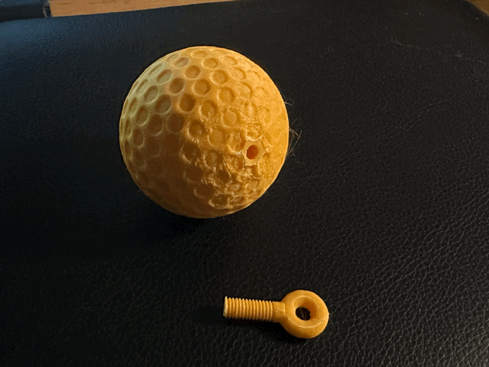 Kích thước chính thức của Golf Ball với một ốc vít vòng để gắn kết như một móc khóa.