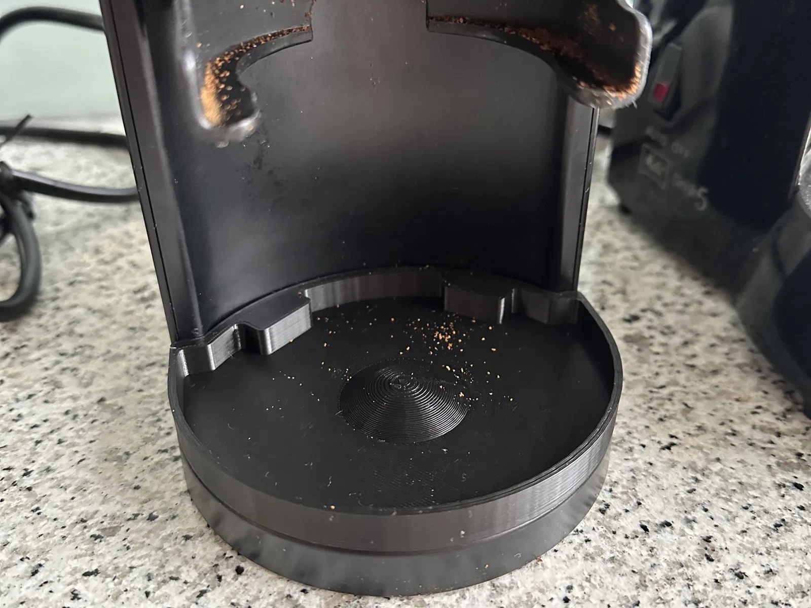 Dưới đây là một khay bắt cho máy xay cà phê Ambiano. Khay có thể tháo rời, làm cho nó dễ dàng để làm trống bã cà phê.