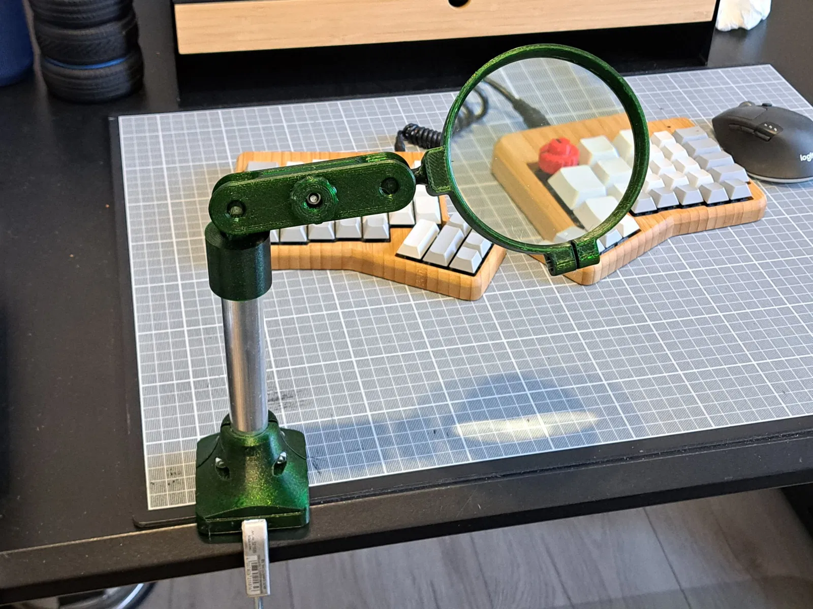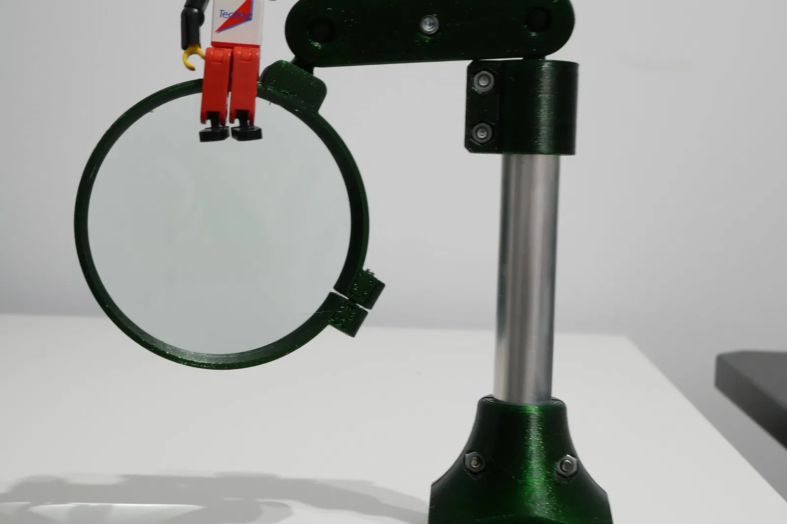 Mô hình này là phụ kiện đầu tiên cho hệ thống “BJ2010” mà tôi vừa mới phát hành. Nó cho phép gắn một ống kính phóng đại vào một tay nối bóng, cho phép bạn định vị chính xác ống kính ở nơi bạn cần. Nếu bạn muốn tái tạo toàn bộ lắp ráp, bạn cũng sẽ cần các mô hình sau: - Tay nối bóng BJ2010 - Giá đỡ ống BJ2010 - Kẹp bàn ống Ngoài ra, bạn sẽ cần - một ống dài 20 mm với chiều dài mong muốn - một vài vít và bu lông M4 - 8 x 20 mm bu lông và đai ốc m4 (đối với một số bộ phận, những cái ngắn hơn sẽ hoạt động tốt hơn nhưng 20 mm nên hoạt động cho tất cả chúng) - một ống kính phóng đại (tôi đã sử dụng một ống kính có đường kính 90 mm với độ dày 3 mm ở các cạnh) - một kẹp điều chỉnh Tôi cũng cung cấp các tệp FreeCAD cho tất cả các thành phần cần thiết trong trường hợp bạn cần tùy chỉnh các bộ phận cho các ống kính, kẹp hoặc ống có kích thước khác nhau.