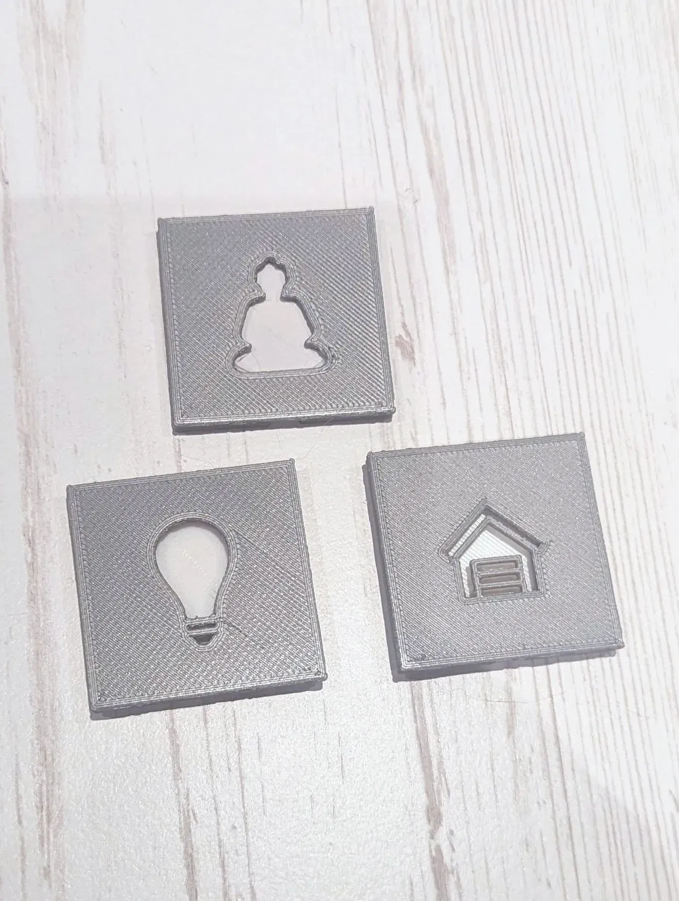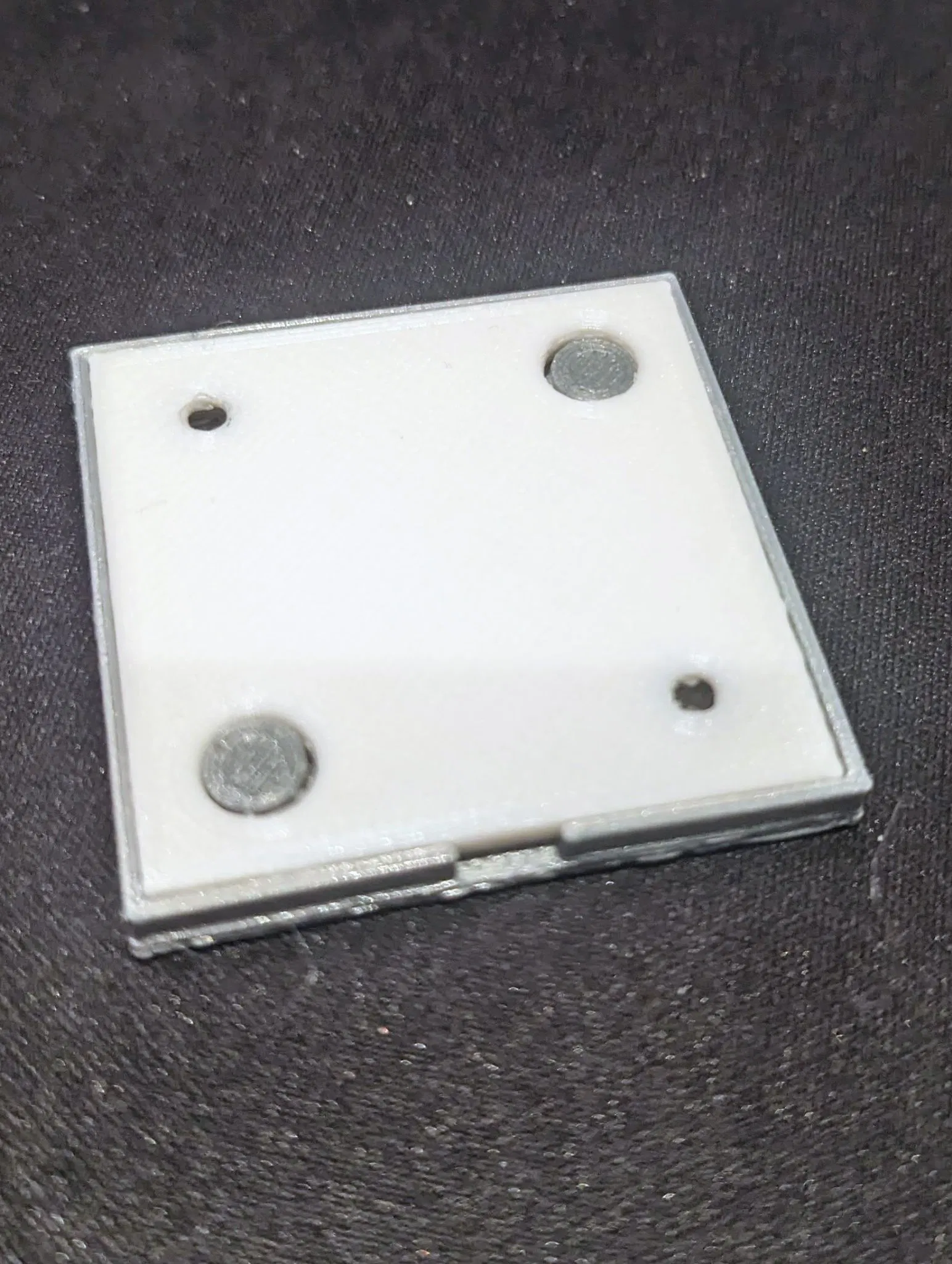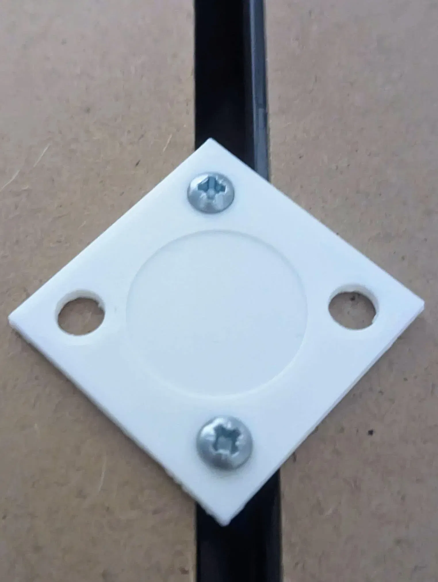 Giá đỡ này dành cho sticker NFC 25mm, gồm đế gắn tường và nắp có biểu tượng. Khoảng trống phía sau giúp dễ dàng tháo lắp khi cần.