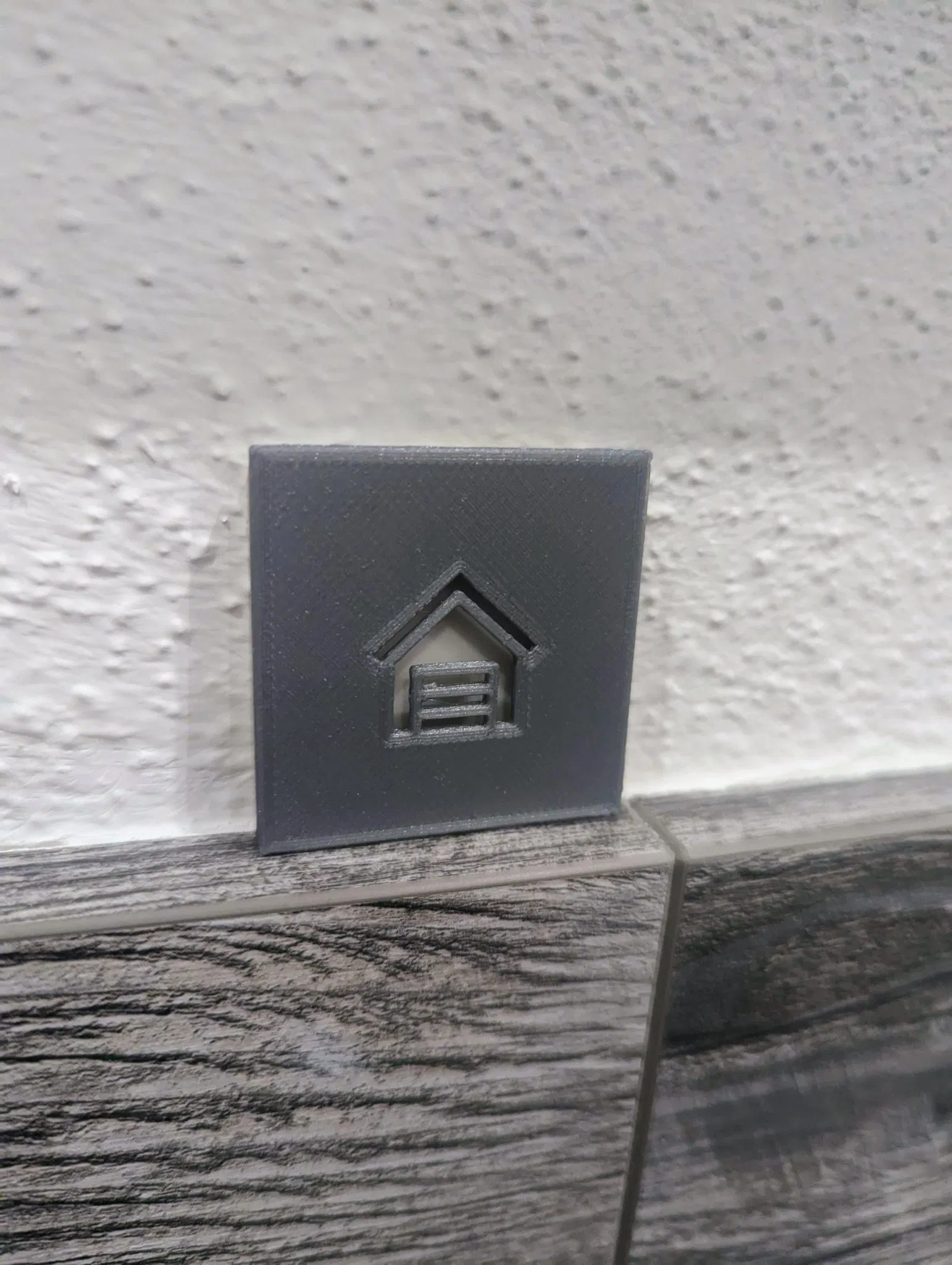 Cái đế đựng sticker NFC này có một cái đế và một cái nắp có biểu tượng. Cái đế được bắt vít vào tường. Thẻ NFC (loại sticker 25 mm) vừa với cái nắp.