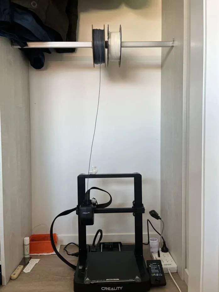 Giá đỡ cuộn dây cho các giá treo quần áo/đồ vật 15x30mm. Tôi có máy in trong tủ quần áo của mình và có các thanh treo quần áo ở trên, vì vậy tôi đã làm giá đỡ này để vừa với thanh treo, để cuộn dây có thể quay dễ dàng hơn và không bị trượt trên thanh. Hãy chắc chắn rằng kích thước của phần bên trong là chính xác.