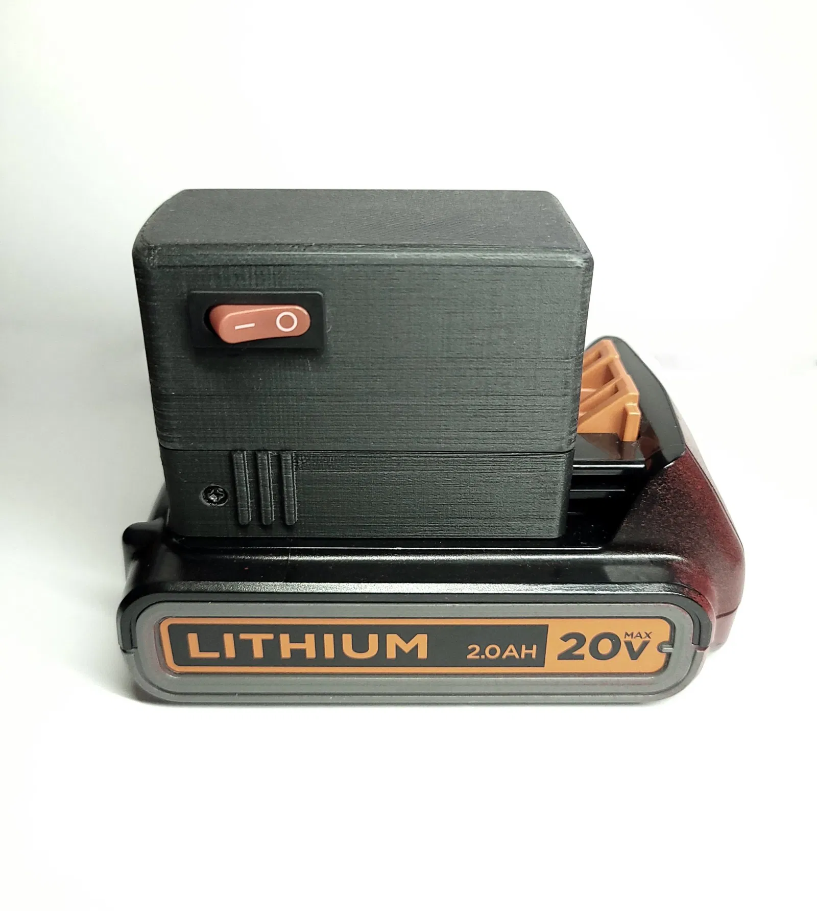 Toàn bộ bộ chuyển đổi được thiết kế để vừa khít với pin nhằm tránh cần phải sử dụng kẹp vì thực sự không có vẻ cần thiết cho nhu cầu của tôi. Tất cả các bộ phận đều được thiết kế để ưu tiên vẻ ngoài và độ hoàn thiện của thiết kế hoàn chỉnh và để giảm thiểu số lượng giá đỡ cần thiết khi in. Tất cả các tệp nên đã được định vị sẵn để sẵn sàng in với giá đỡ cây được thêm vào. Thật không may, tôi đã sử dụng bất kỳ loại ốc vít nào mà tôi có sẵn và tôi cũng không có bất kỳ chèn ren nào. Tôi đã bao gồm 2 phiên bản của vỏ. Một cái có và một cái không có bất kỳ lỗ cắt nào cho công tắc bật/tắt mà tôi đã sử dụng, vì vậy một lỗ có thể được cắt cho bất kỳ thứ gì bạn có sẵn. Tôi đã có một số suy nghĩ về việc có thể thêm các cách để cố định các phụ kiện vào vỏ bằng cách sử dụng không gian ở mặt phẳng và mặt sau. Có lẽ tôi sẽ thêm một số trong tương lai.