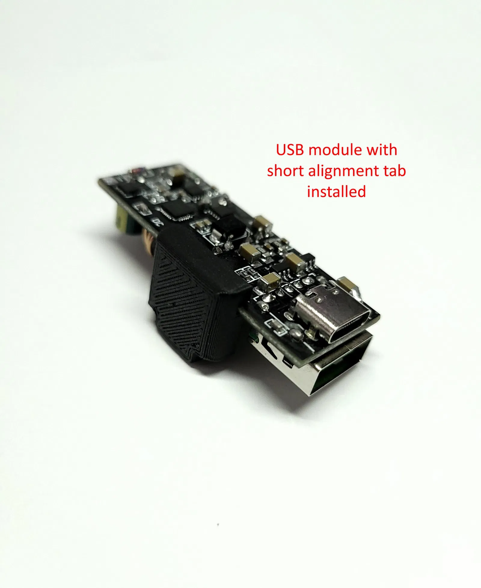 - Gắn chấu căn chỉnh ngắn vào mô-đun USB như trong hình và chèn nó vào đế.