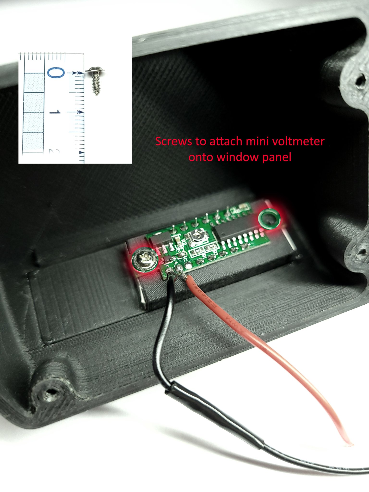 5. Vặn đồng hồ đo điện áp mini vào bảng cửa sổ. Thực sự thì phần này rất dễ vỡ. Những lần đầu tiên tôi cố gắng vặn nó vào thực sự đã làm vỡ phần đó nên tôi chỉ giữ lại 1 trong 2 con vít.