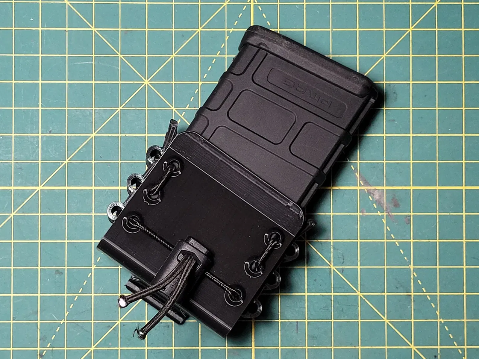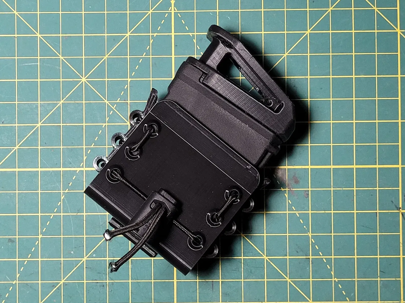 Một bản remix của "3D printable molle universal rifle magazine pouch" của FecalDisco, ngắn hơn, cho phép chứa các băng đạn AR15 10 và 20 viên. Phụ kiện MOLLE cũng đã được thay thế bằng một móc đai từ "PPDS Ghoulster" của PhilPhisher.