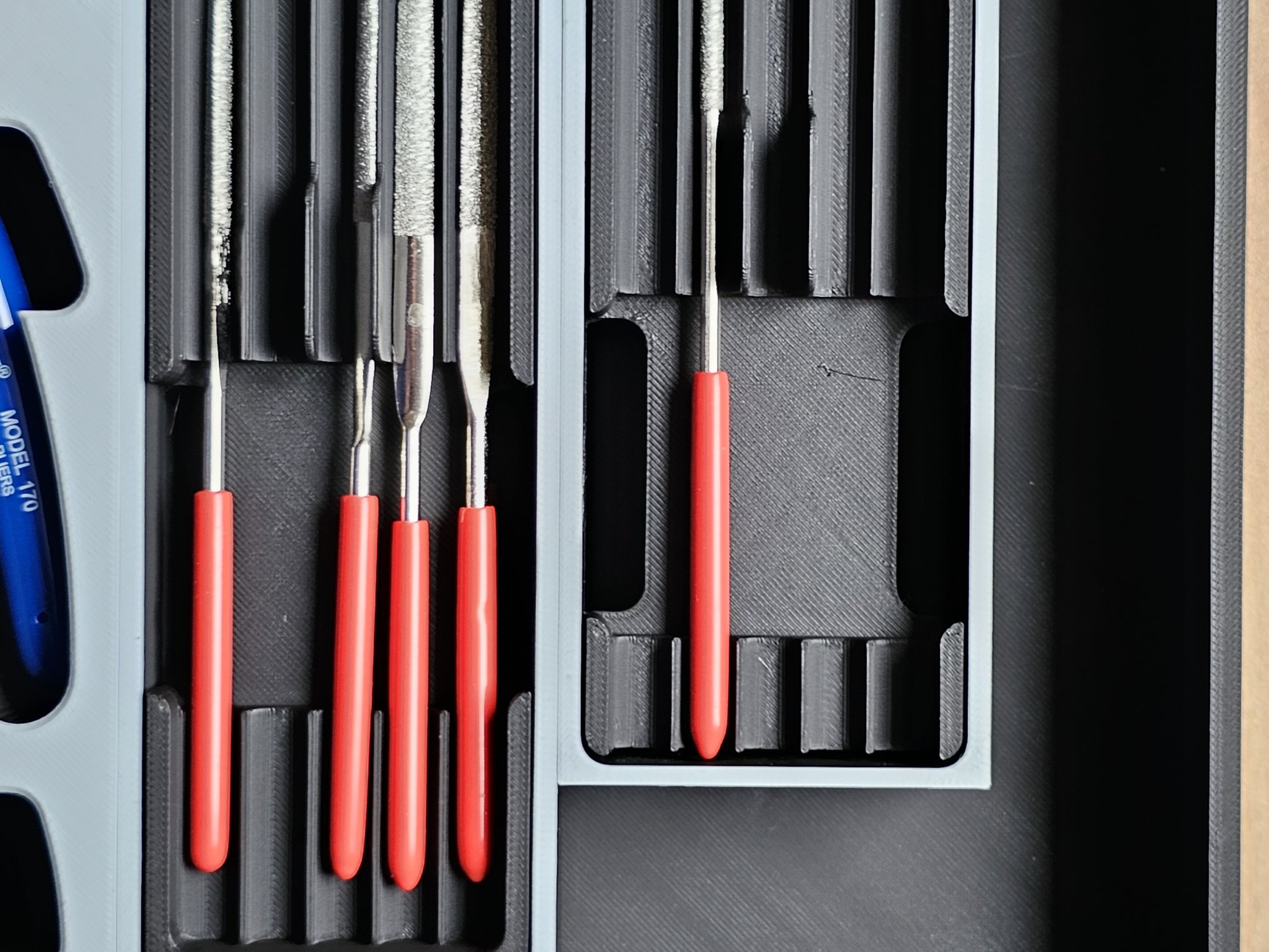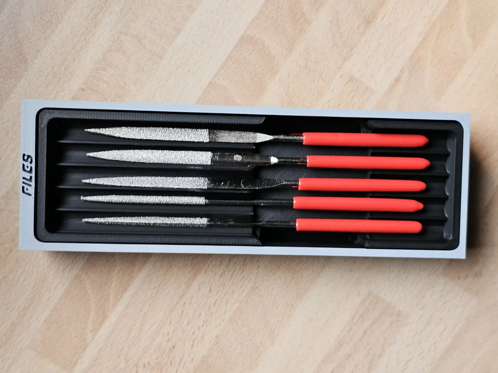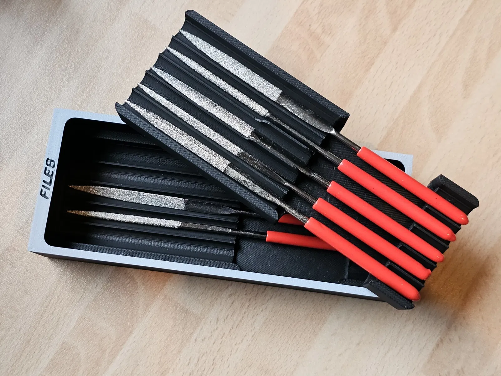 Bản chèn này được thiết kế cho 10 tệp hình thoi như một phần bổ sung cho hệ thống tuyệt vời từ @Willi. Hãy kiểm tra trang của anh ấy để xem thêm nhiều bản chèn và mô-đun tuyệt vời khác. Bạn có thể chọn giữa hai kích thước: - kích thước 1: 150 x 60 mm (tức là 5x2) Xin lưu ý: Các tệp hình thoi thông thường được cung cấp với chiều dài 140mm, mặc dù tôi đã phát hiện ra rằng đây dường như chỉ là một giá trị gần đúng. Do đó, trước khi in, vui lòng kiểm tra rằng các tệp của bạn không vượt quá chiều dài 140mm. Chiều dài bên trong lý thuyết của hộp là 141.8 mm, vì vậy không có nhiều khoảng trống ở đây. Nếu chỉ một vài tệp quá dài, bạn có thể xem xét cắt chúng đi một vài milimét ở cuối trục. Nếu không, vui lòng sử dụng kích thước 2.