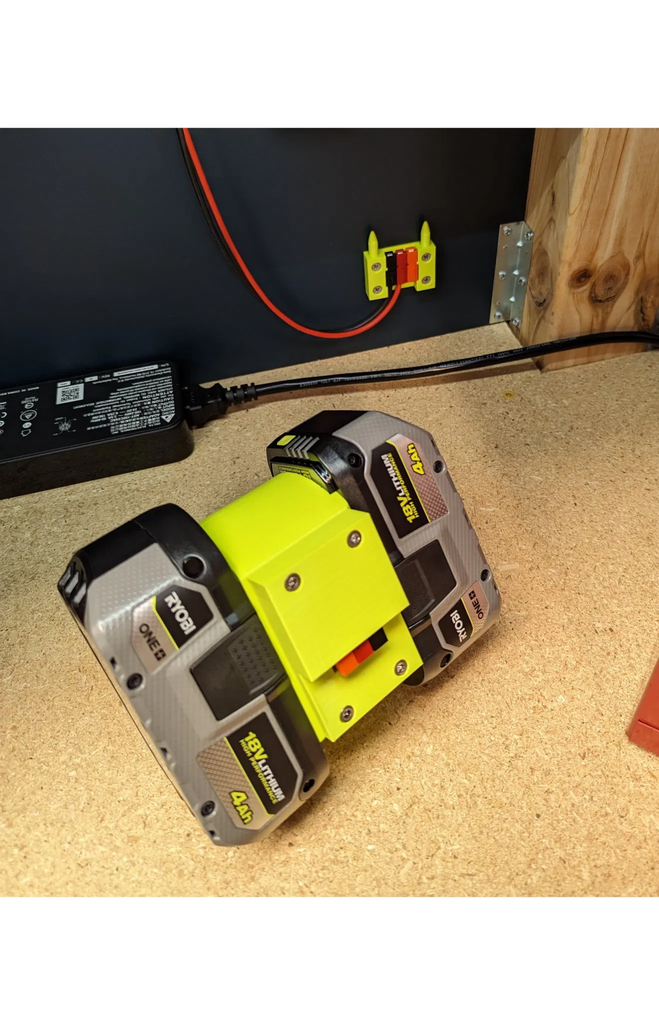 Cập nhật 04/22/2025 Dễ dàng gắn hai pin 18v với kết nối điện Hỗ trợ 18v nối tiếp để có đầu ra 36-40v (tùy chọn bao gồm đầu ra 18v "được trung tâm chạm" thông qua chân PowerPole thứ 3 hoặc để ngắt kết nối) Hỗ trợ 18v song song để có đầu ra 18v với gấp đôi định mức Ah (đề xuất chặn diode ở phía + của mỗi pin) KHÔNG sạc pin theo kiểu nối tiếp hoặc song song, hãy tháo chúng ra khỏi bộ chuyển đổi này và chỉ chèn vào các bộ sạc được phê duyệt. Chèn Qty.4 của Keystone 209. 1 Cell Leaf Spring Battery Contact, Spring Steel, Nickel Plating (vào giá đỡ đôi sau khi hàn dây vào, TỐI THIỂU 14 AWG được đề xuất) Sử dụng Qty.2 của vít đầu nắp M4*16mm hoặc 18mm ở bên dày và Qty.2 của vít đầu nắp M4*8mm ở bên mỏng Chạy dây qua lỗ giữa giá đỡ đôi và tấm gắn cắm, cuối cùng cắt dây đến độ dài và kẹp vào Qty.3 của chân PowerPole. Dán Qty.4 kẹp pin để ngăn các tiếp điểm lá lò xo bị đẩy ra ngoài. PETG được đề xuất để có độ bền và khả năng chịu nhiệt. Hình ảnh sử dụng OVERTURE PETG Grass Green rất gần với màu xanh Ryobi. Xem các bộ chuyển đổi tương thích với Ryobi 18v khác của tôi.