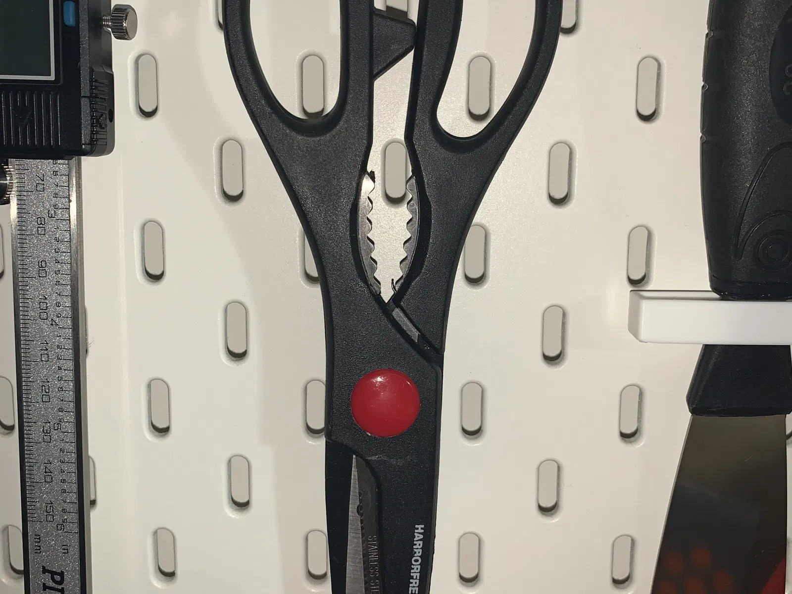 Một cái móc bảng Skadis đơn giản của IKEA để giữ một kéo.
