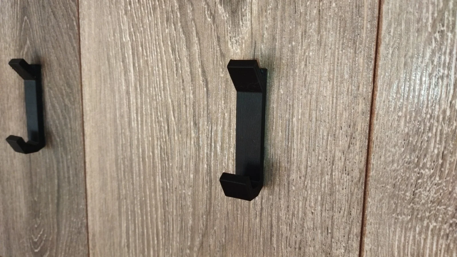 hai loại móc treo, hai loại gắn kết: 1. dán - phần này có rãnh ở phía sau để tiếp xúc tốt hơn với keo 2. gắn bằng vít - phần này có hai lỗ cho vít tự khoan 3mm