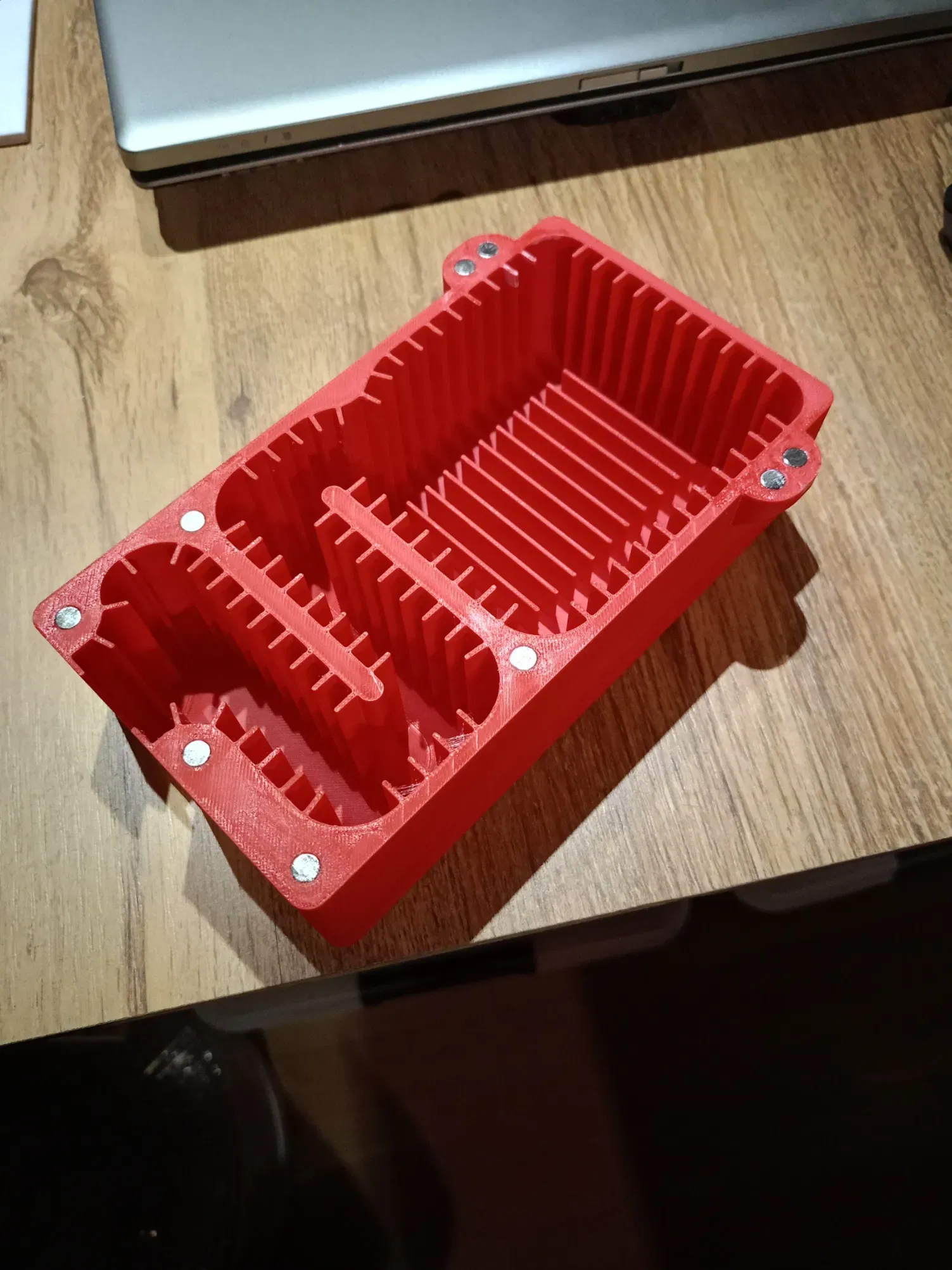 Tôi đã làm cho bộ giảm thanh phẳng hơn, ngắn hơn và hẹp hơn một chút. Nó bây giờ nặng dưới 200g. Tôi cũng đã sử dụng nam châm nhỏ hơn (6x2mm) (https://www.supermagnete.de/scheibenmagnete-neodym/scheibenmagnet-6mm-2mm\_S-06-02-N).