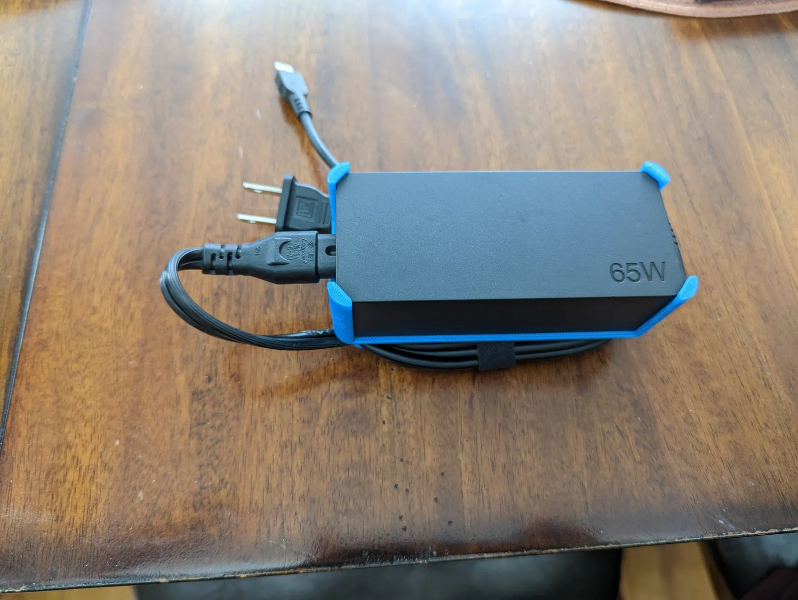 Cuộn quản lý cáp cho bộ sạc Lenovo 65W đi kèm với Think Pad X1 Carbon Gen10. Tôi cá rằng Lenovo sử dụng bộ sạc 65W giống nhau cho nhiều laptop. Giữ cho viên sạc an toàn và quản lý cáp mà không chiếm quá nhiều không gian.