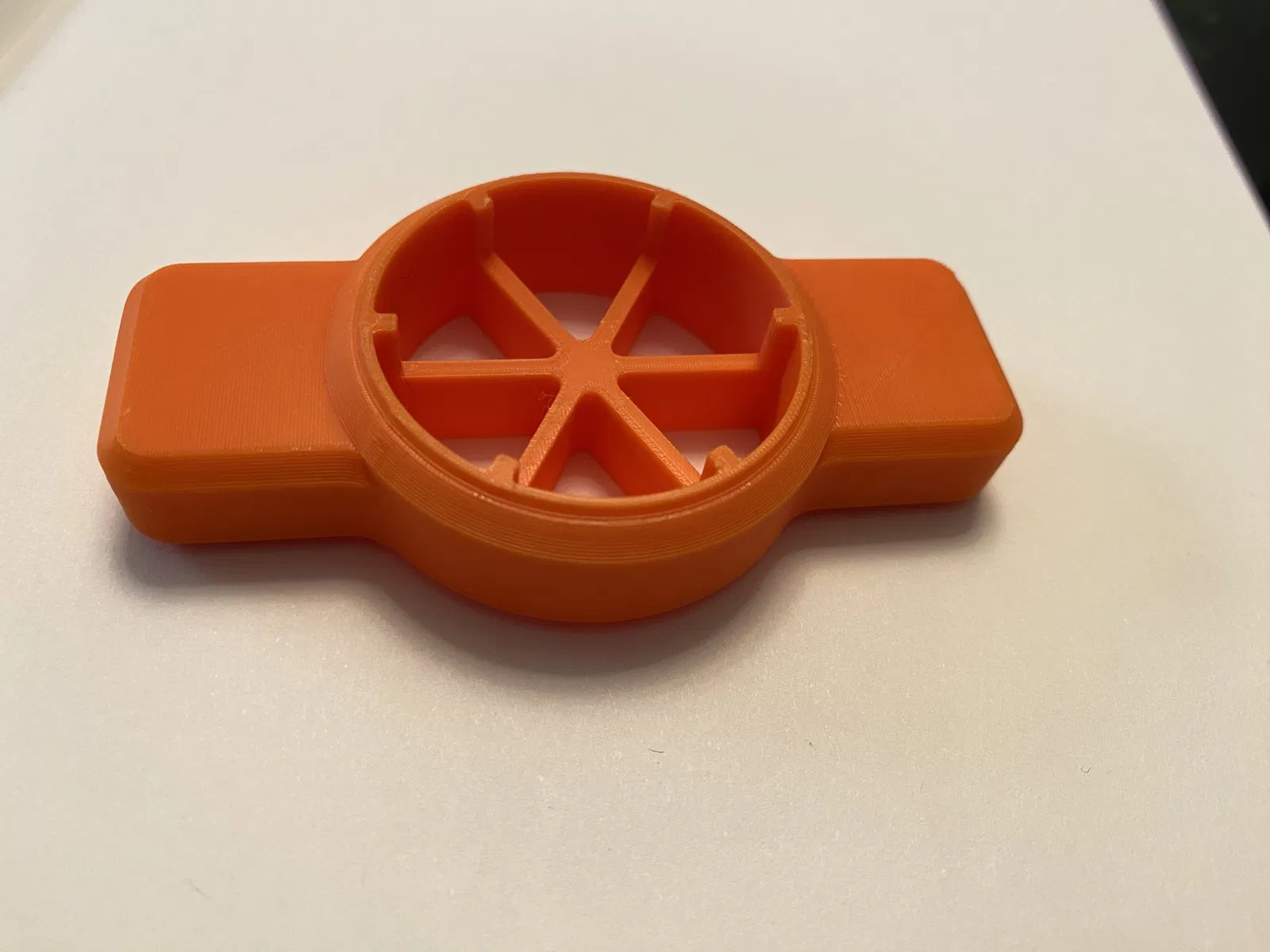 Chiều cao của nắp lưng và vị trí núm vặn là những ràng buộc bổ sung. Mép vát cung cấp đủ khoảng trống để không chạm vào núm vặn. Các rãnh cung cấp độ cứng bổ sung. Được in trên X1C với chiều cao lớp 0.2mm, 3 vòng tường, 25% độ đầy.