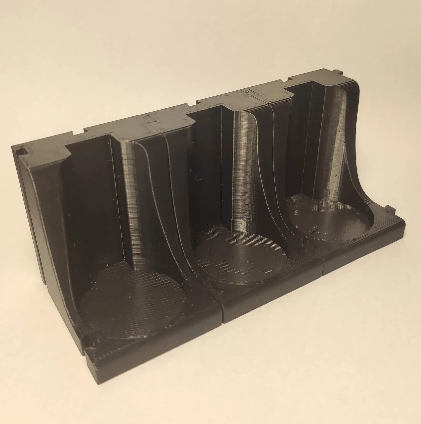 Các mô-đun được kết nối bằng các mộng đơn giản. Tôi khuyên bạn nên in tệp thử nghiệm trước để kiểm tra sự can thiệp của các mộng trước khi in toàn bộ giá. Để điều chỉnh kích thước mộng, hãy mở tệp F3D và điều chỉnh các tham số kích thước, cho đến khi có sự vừa vặn giữa mộng đực và mộng cái.