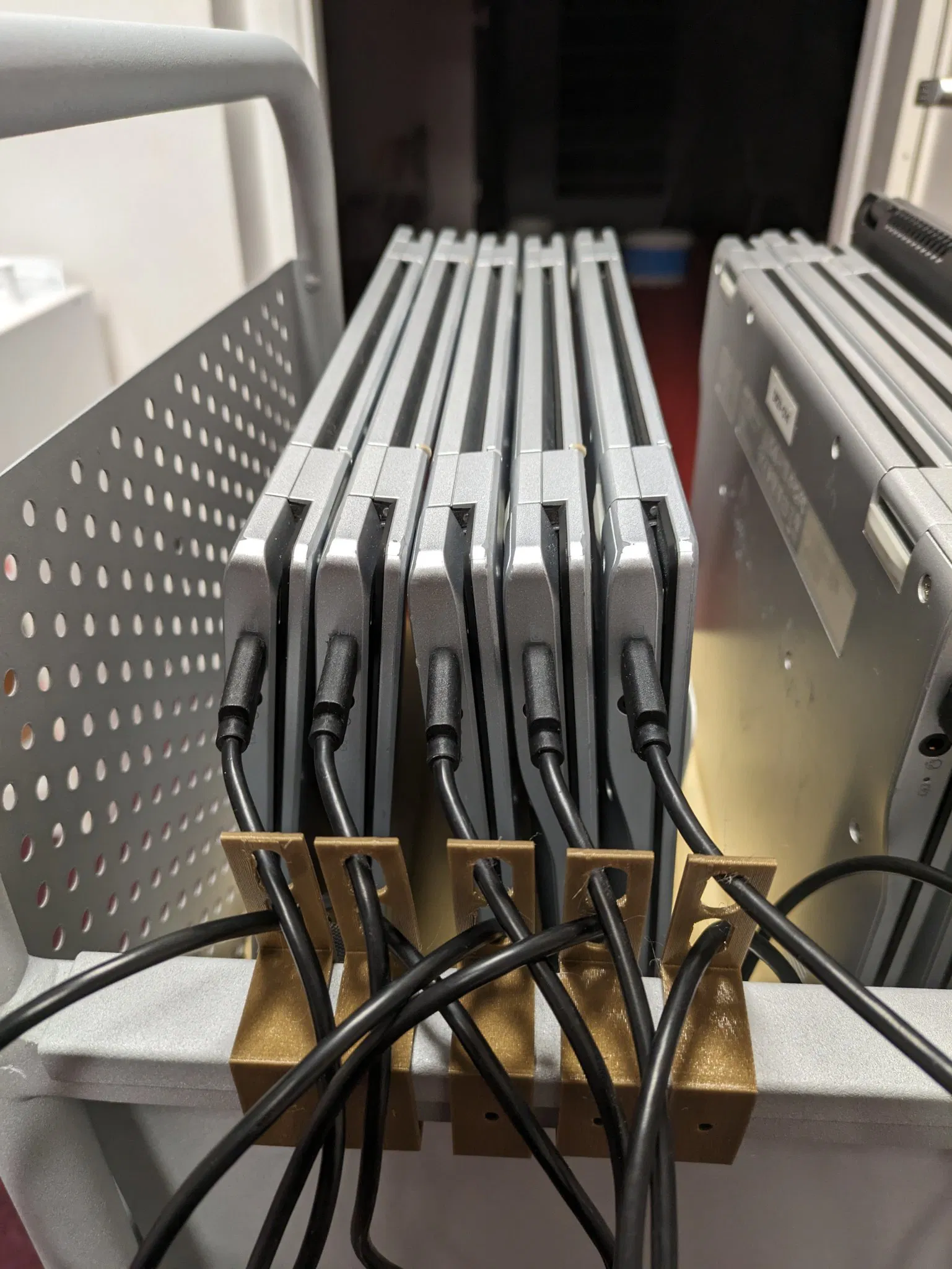 Tổ chức cáp nguồn USB-C cho Chromebook và xe đẩy thư viện LEA. Ở trường, chúng tôi sử dụng cái này để cấp nguồn cho 15 Chromebook. Đã thử nghiệm với PLA mà không cần giá đỡ.