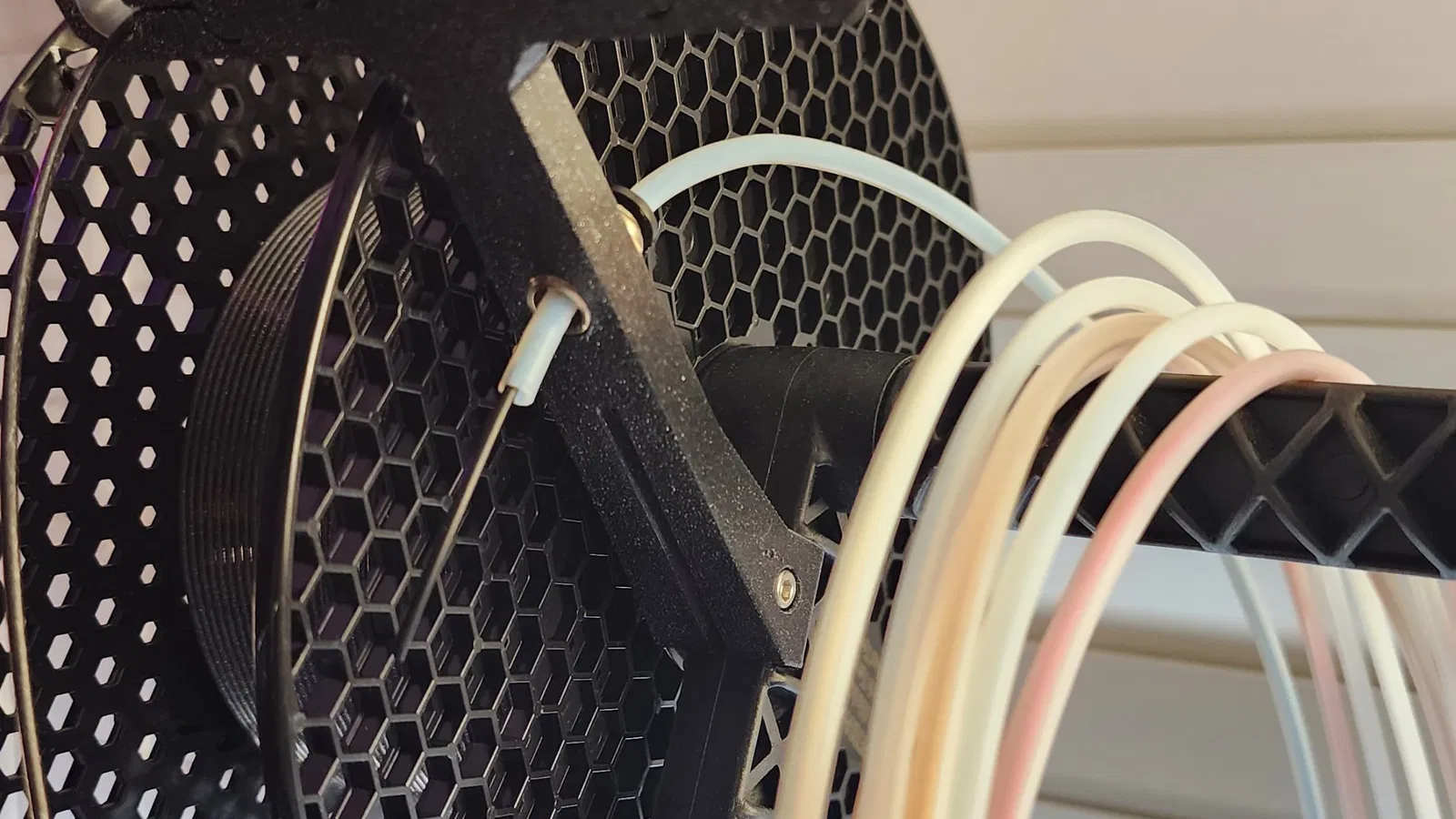 The purpose of this is to still be able to use the stock spool mount for flexible filament but still have a reverse bowden setup.