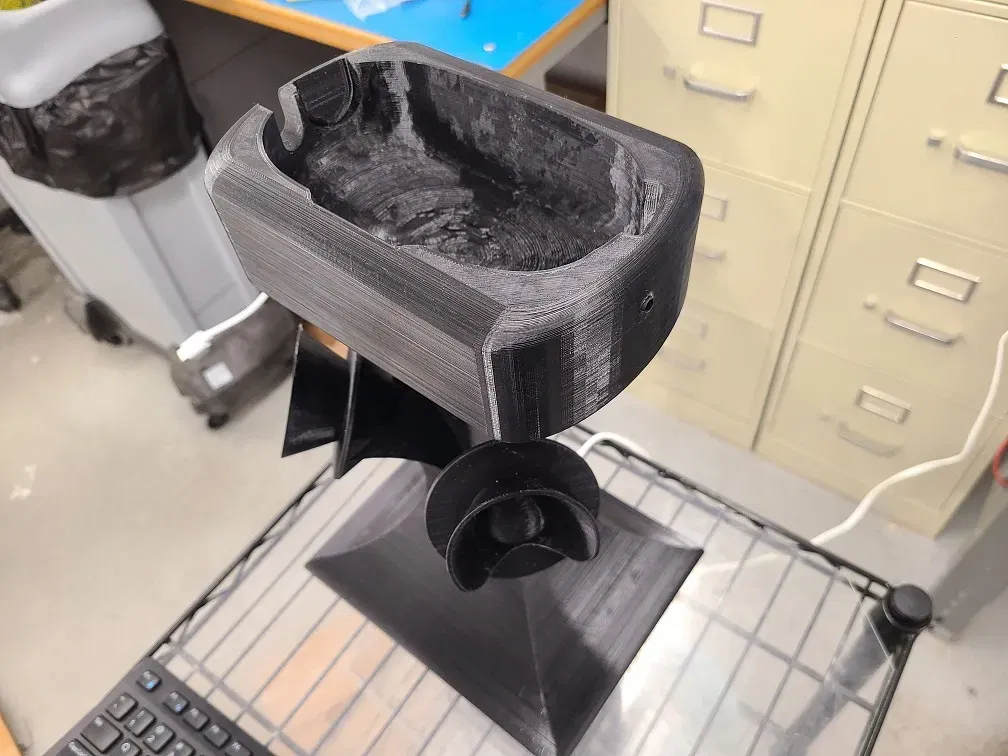 Tôi đã làm điều này vì tôi đã mua một tai nghe thay thế cho nó và nó không còn vừa với hộp lưu trữ gốc. Tôi muốn có một nơi tiện lợi và phong cách để lưu trữ và sạc thiết bị khi không sử dụng. Tôi đã thiết kế nền tảng quét Kinect của mình đặc biệt để quét 3D Quest 2 nhằm tạo ra một giá đỡ vừa vặn mà bạn có thể đặt tai nghe theo chiều dọc và sạc một cách tiện lợi. Phần cứng khác cần thiết được liệt kê trong danh sách phần cứng trong tài liệu word hoặc văn bản.