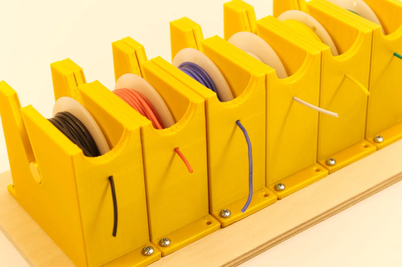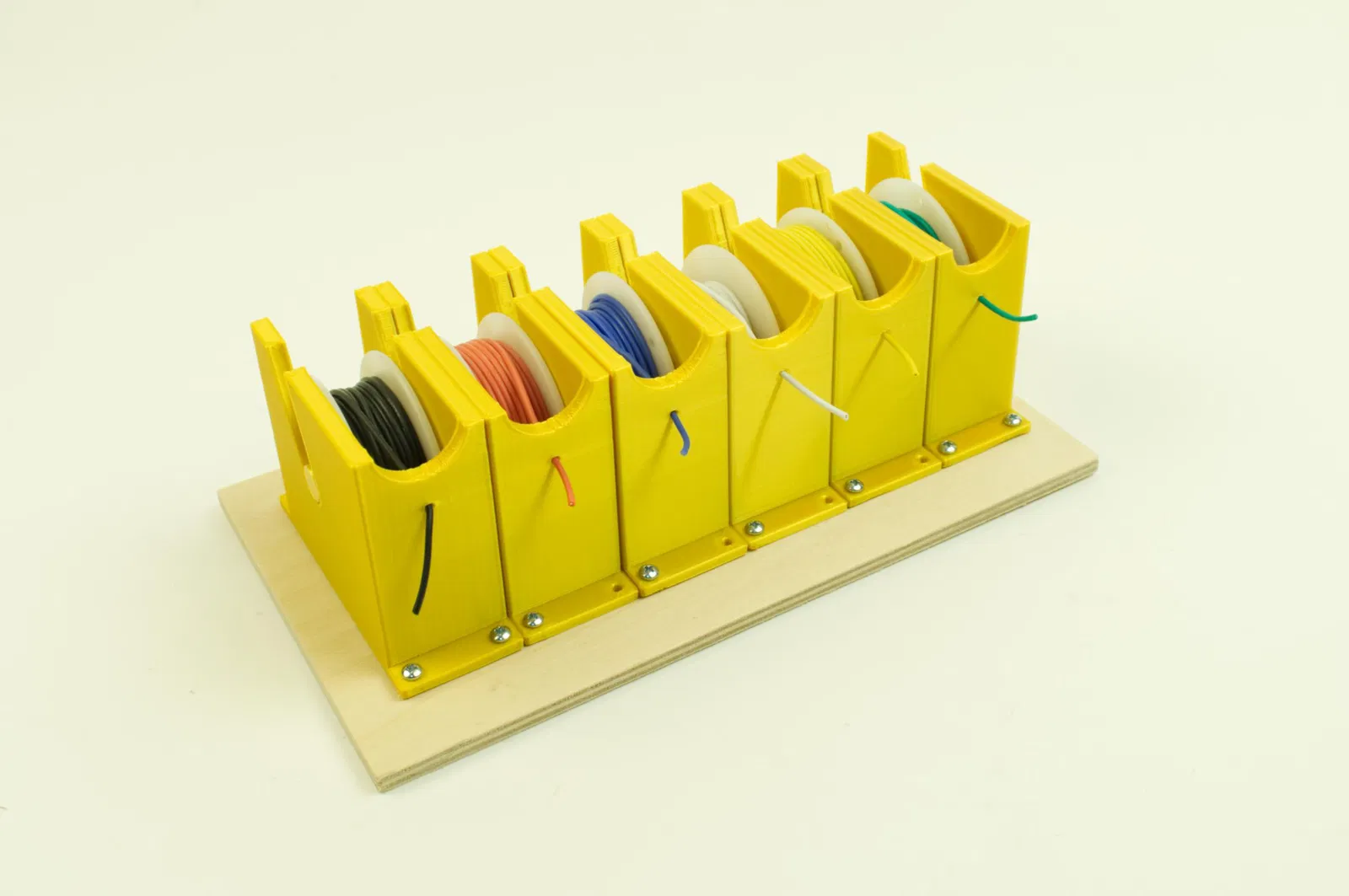 Chán cảnh dây điện tuột vô hộp giấy, tui chế cái giá đỡ cuộn dây silicon này. Vừa in xong là xài liền, có lỗ nhỏ giữ dây khỏi tuột. File OpenSCAD có sẵn để chỉnh sửa theo ý thích.