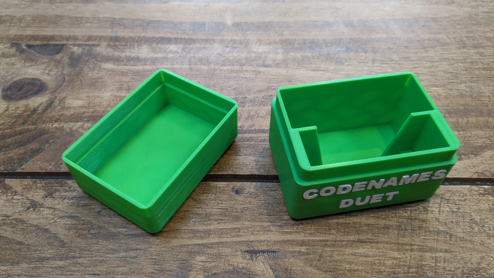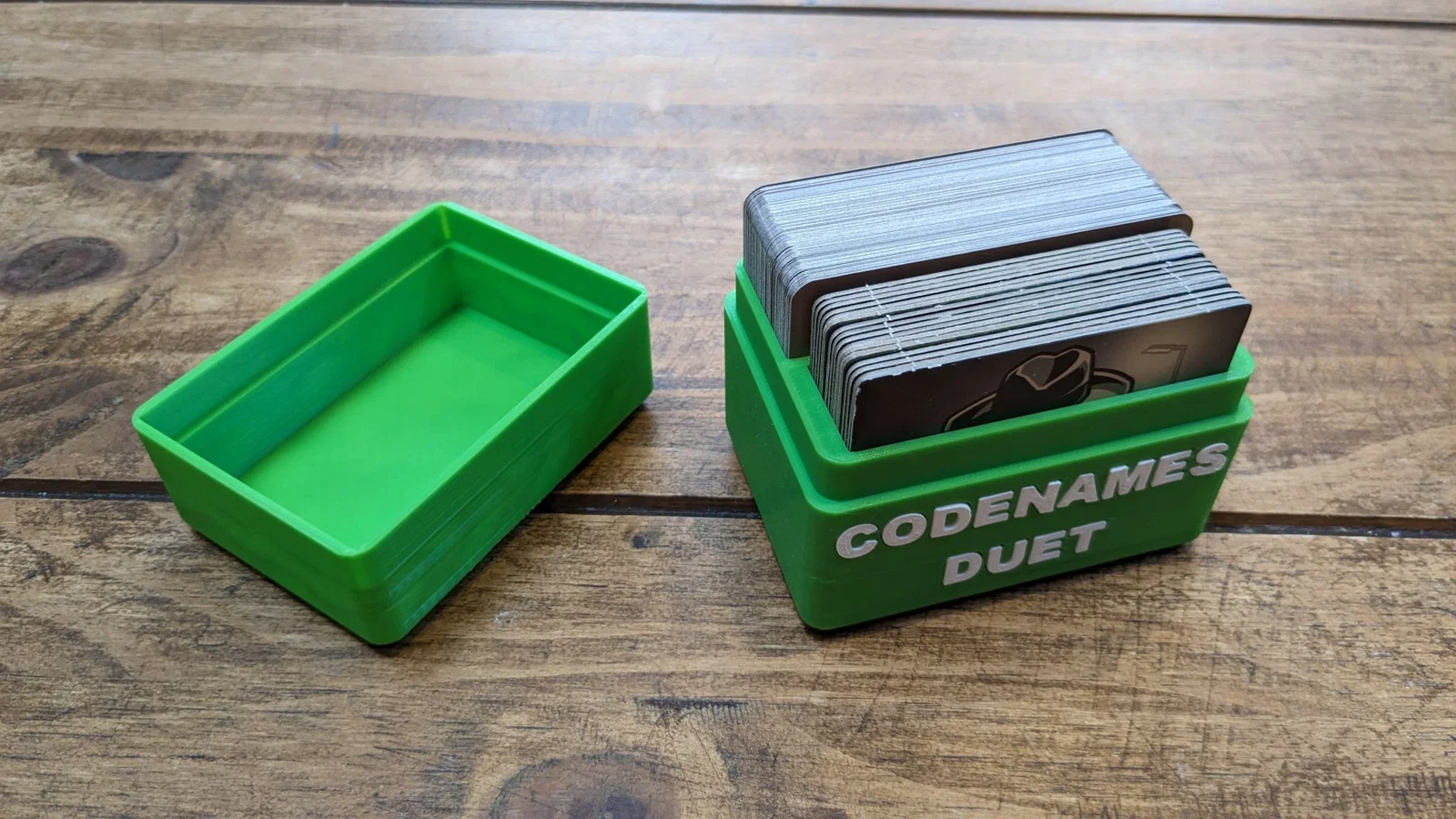 - 0.2 First Layer Height Print all parts separately and glue the letters in the spaces. Please note - this box does not have space to store a sandtimer Please note - this box does not have space to store the word cards (I store all my word cards together in my main codenames box -