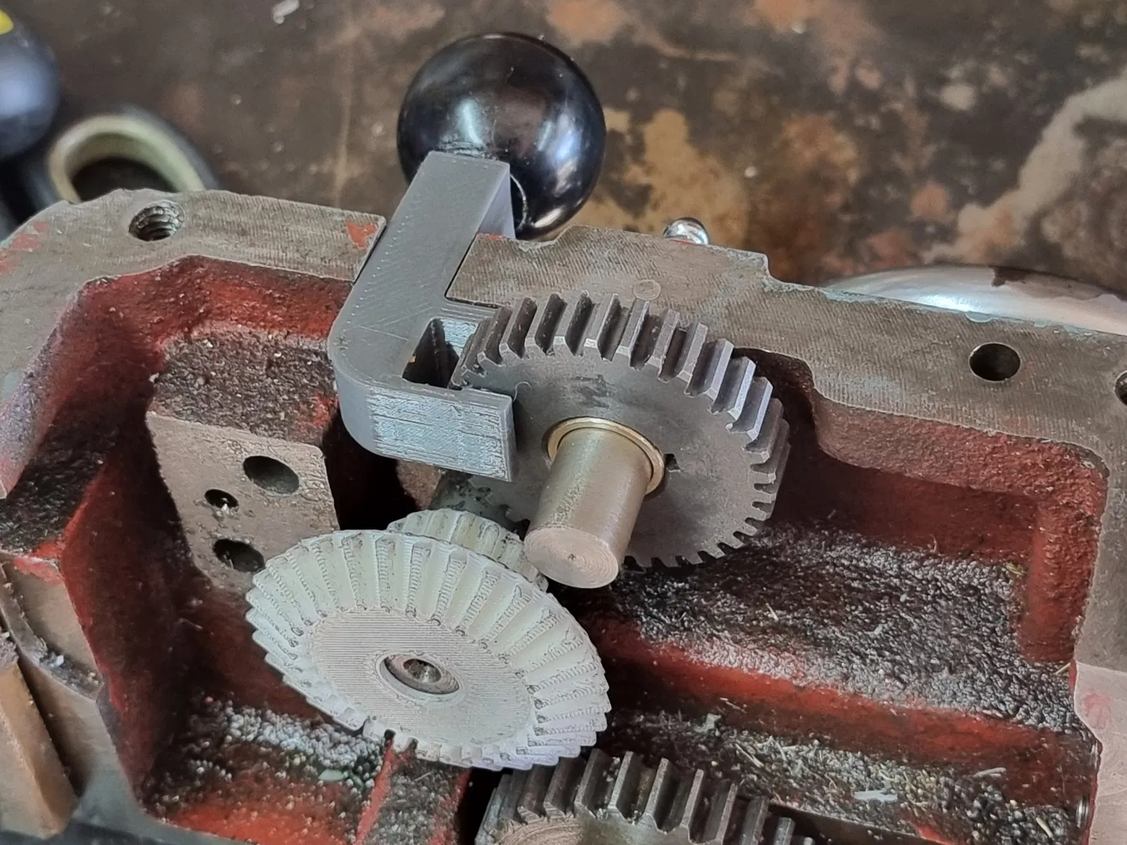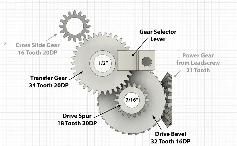 Bạn có thể để ý là tui đang dùng một cái bánh răng kim loại cho phần truyền động trong ảnh chụp màn hình đó - đó là cái bánh răng thay đổi 34T DP20 Myford, tui ép một cái bạc đồng vô và nó chạy ngon lành lắm.
