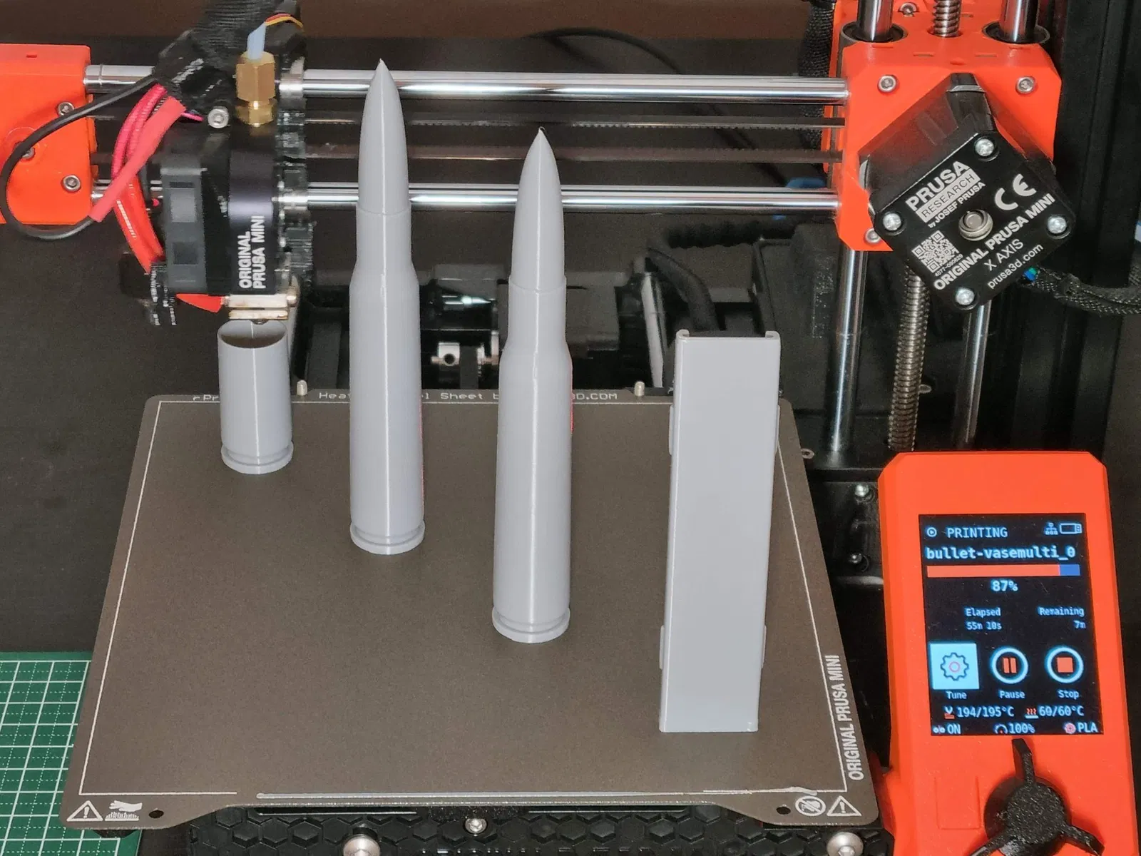Mục đích chính của mô hình này là để tập luyện in theo chế độ "vase mode" (in dạng bình hoa). Chế độ "vase mode" rất phù hợp cho việc in mô hình viên đạn vì nó không tạo ra các đường nối khó coi trên bản in. Những viên đạn và kẹp đạn như trong hình đều được in bằng "vase mode" và in lần lượt từng cái một.